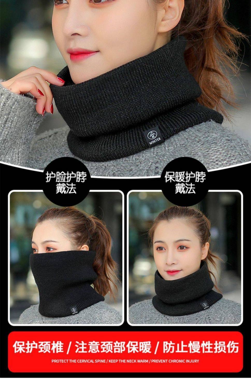 2024 가을 겨울 남성용 및 여성용 니트 방한 마스크, 따뜻한 사이클링 플러스 벨벳 두꺼운 경추 보호 헤드기어, 니트 스카프스토어 가기