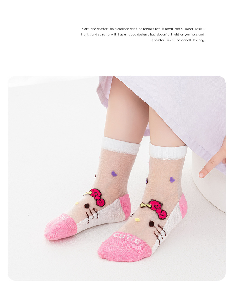 투명한 유리 실크 소녀 양말 여름 경량 만화 아기 중간 튜브 양말 달콤한 귀여운 소녀 공주 양말 유행