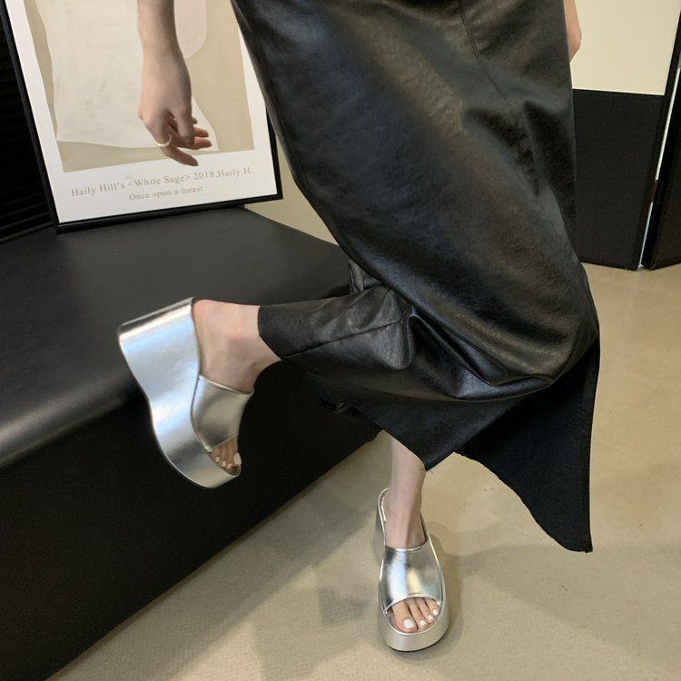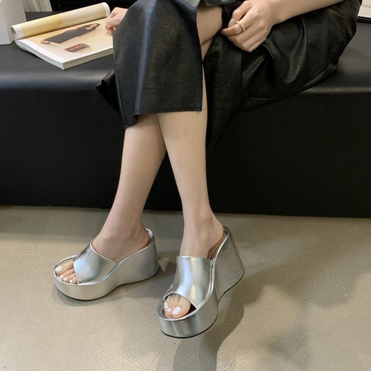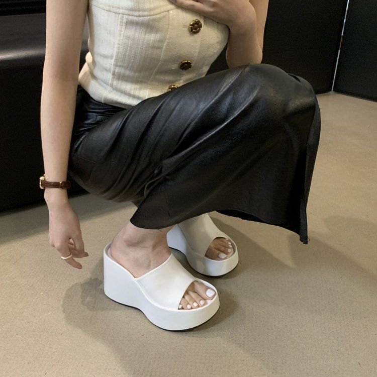 플랫폼 슬리퍼 2025 여름 편안한 캐주얼 패션 아우터 샌들 플랫폼 물고기 발가락 오픈 토 강화 통근 여성 신발스토어 가기