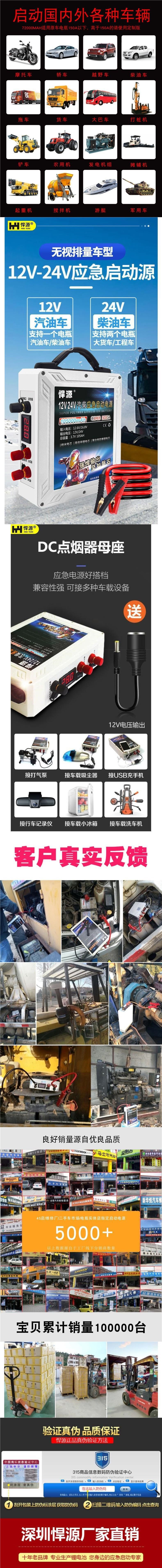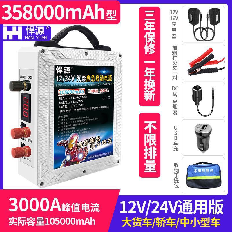 3000A Hanyuan 자동차 비상 시동 전원 공급 장치 대용량 12V24V 강력한 시작 및 화재 배터리 충전 보물