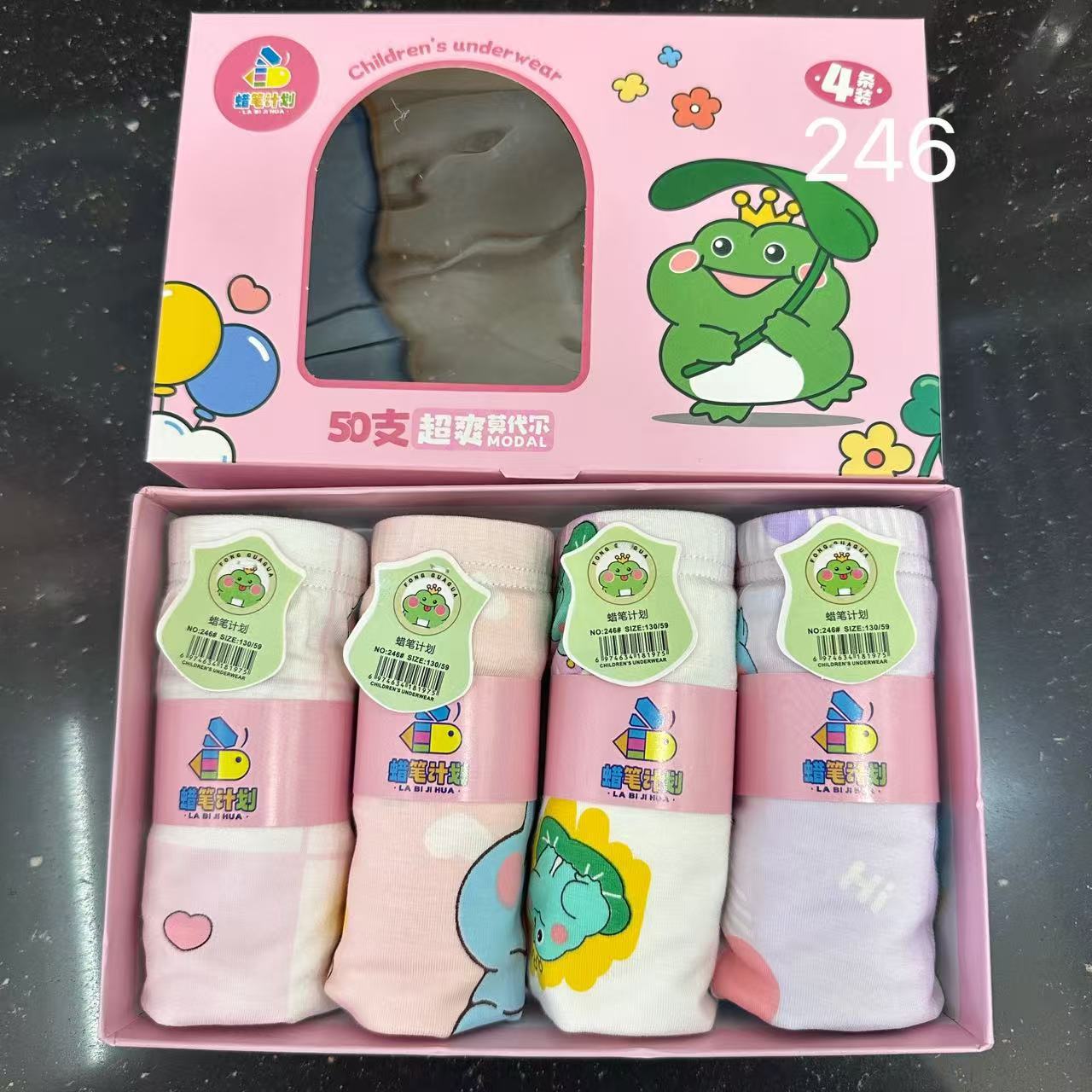 크레용 프로젝트 청소년 학생 아동 속옷 항균 통기성 발달기 소녀 복서 반바지 4개 상자