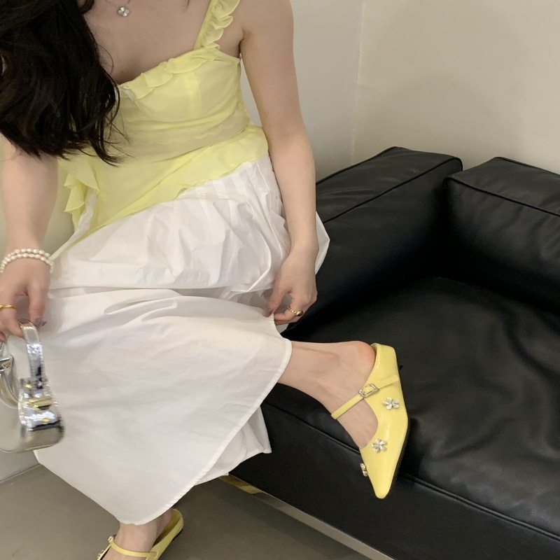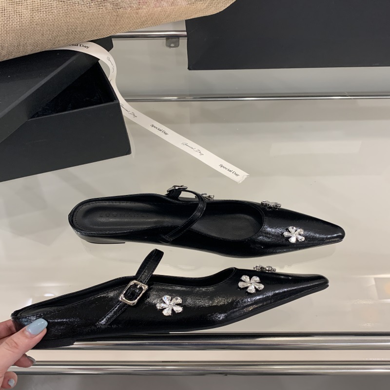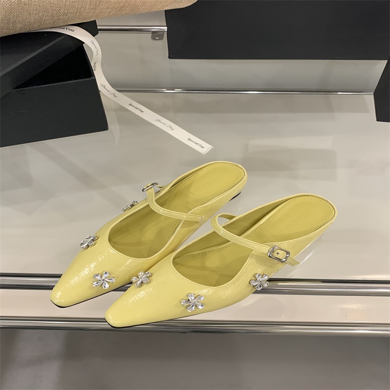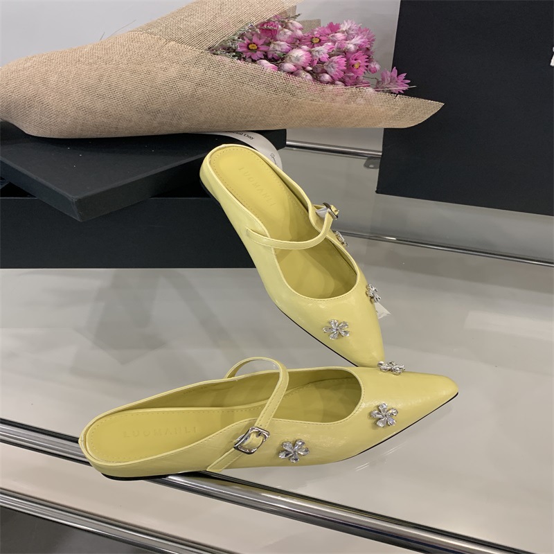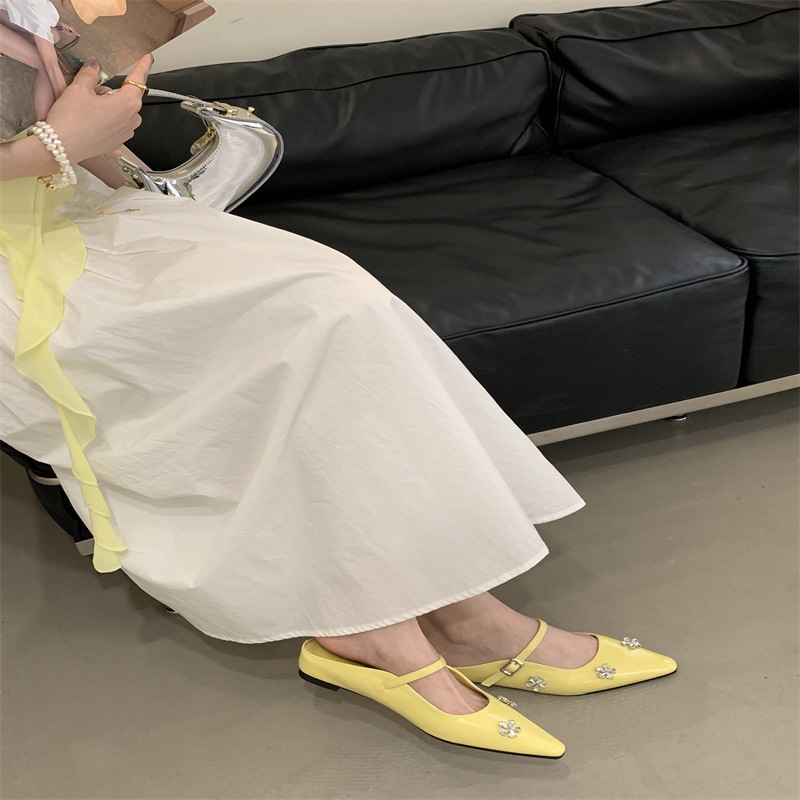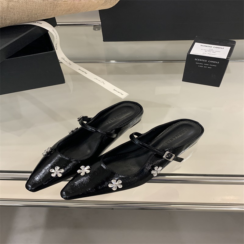 여성용 프렌치 플랫 라인스톤 발가락 반슬리퍼 2025 봄 여름 신상 하이엔드 실버 메리제인 샌들스토어 가기