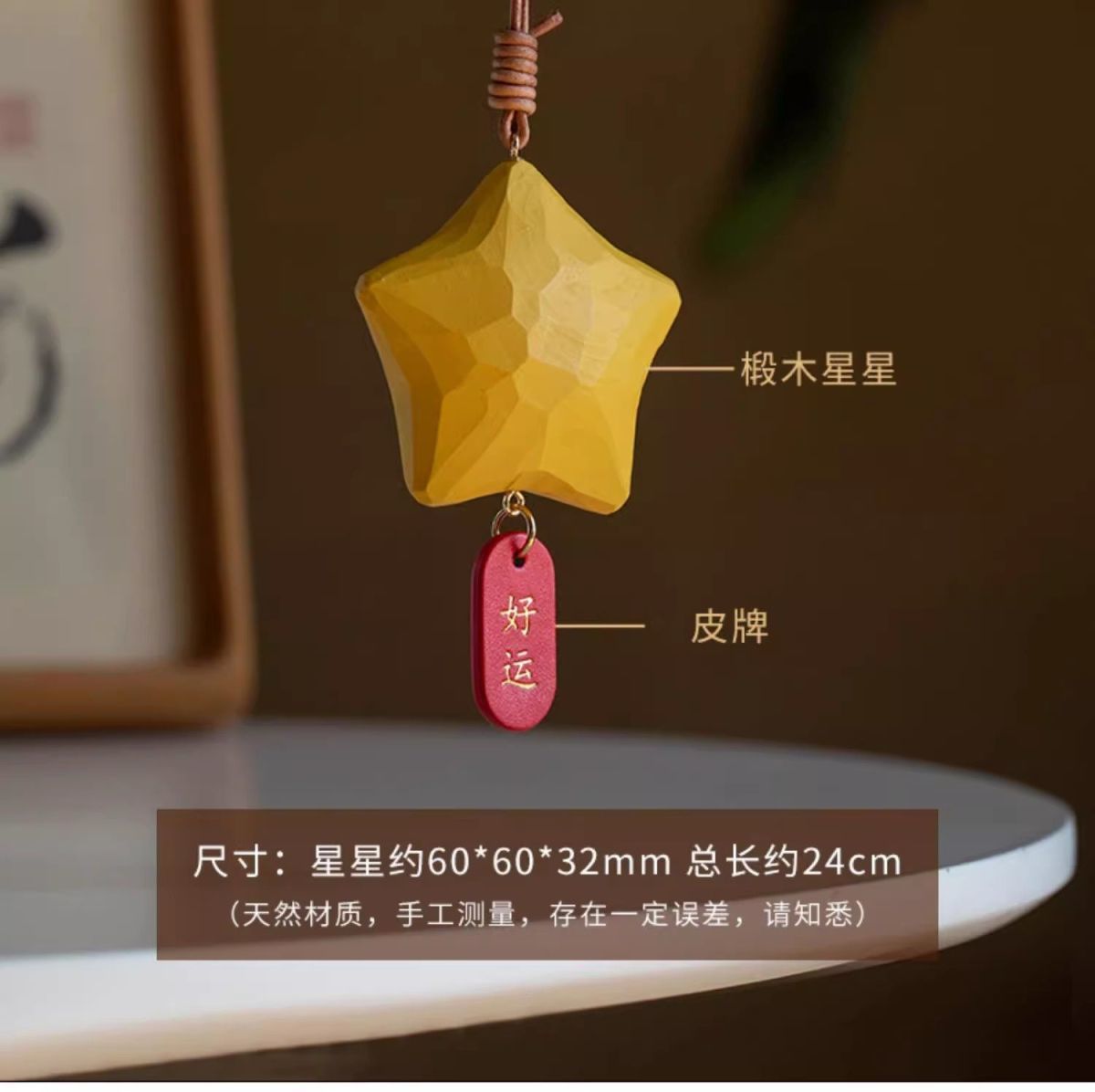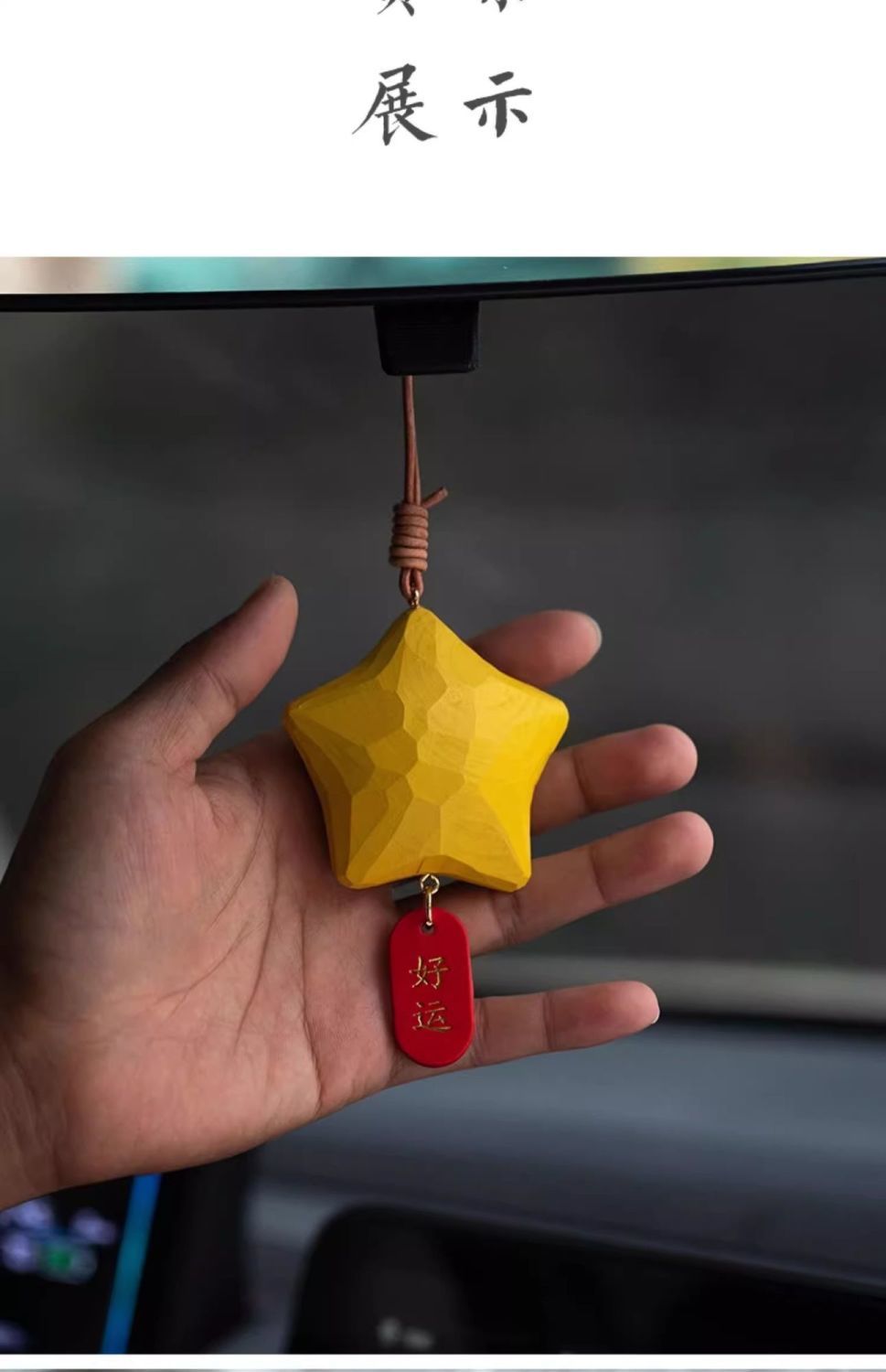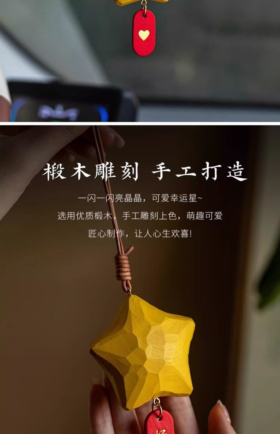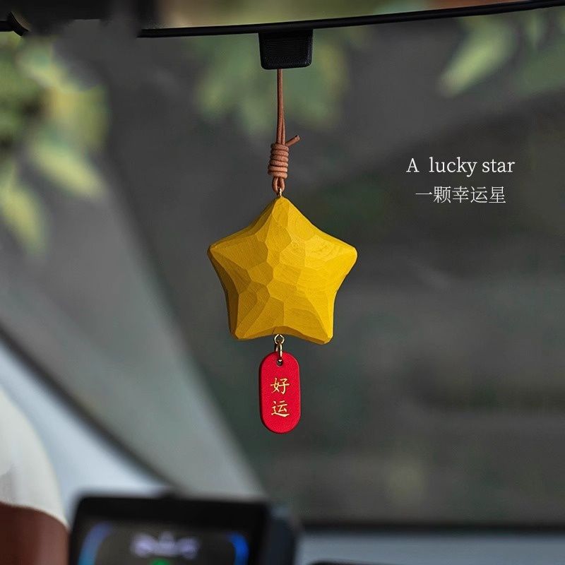 행운의 별 자동차 펜던트, 백미러 펜던트, 손으로 만든 나무 조각, 귀여운 펜던트, 행운이 항상 함께하는 자동차 실내 장식