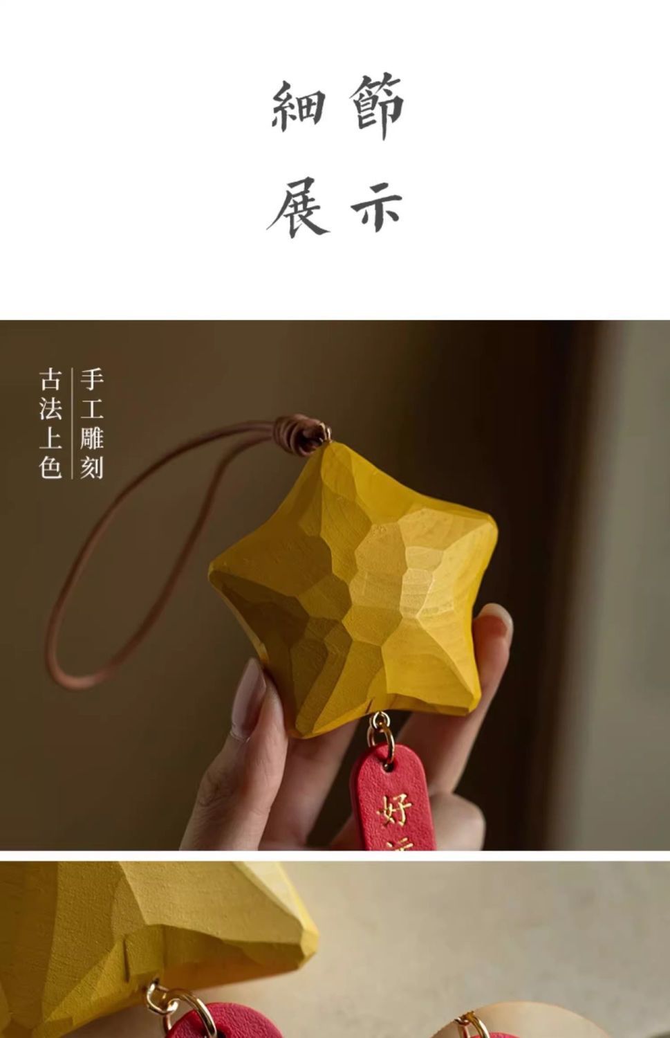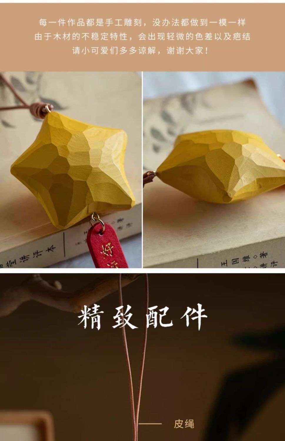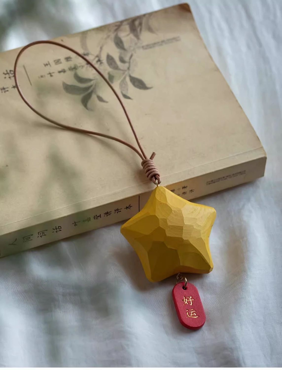 행운의 별 자동차 펜던트, 백미러 펜던트, 손으로 만든 나무 조각, 귀여운 펜던트, 행운이 항상 함께하는 자동차 실내 장식