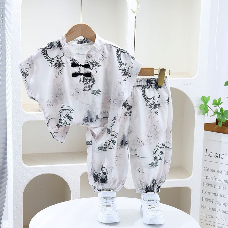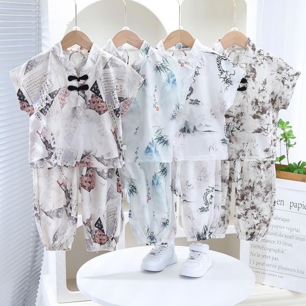 남아의 아기 얇은 여름 한푸 중국 스타일 반팔 세트 어린이 새로운 중국 폭발스토어 가기