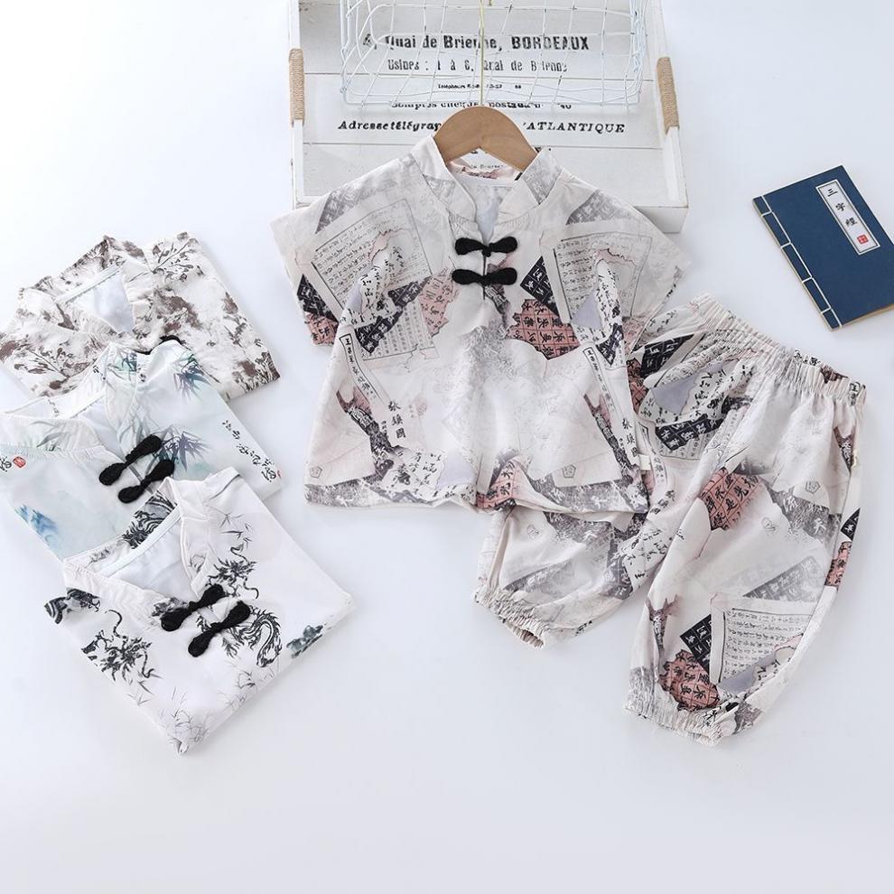 남아의 아기 얇은 여름 한푸 중국 스타일 반팔 세트 어린이 새로운 중국 폭발