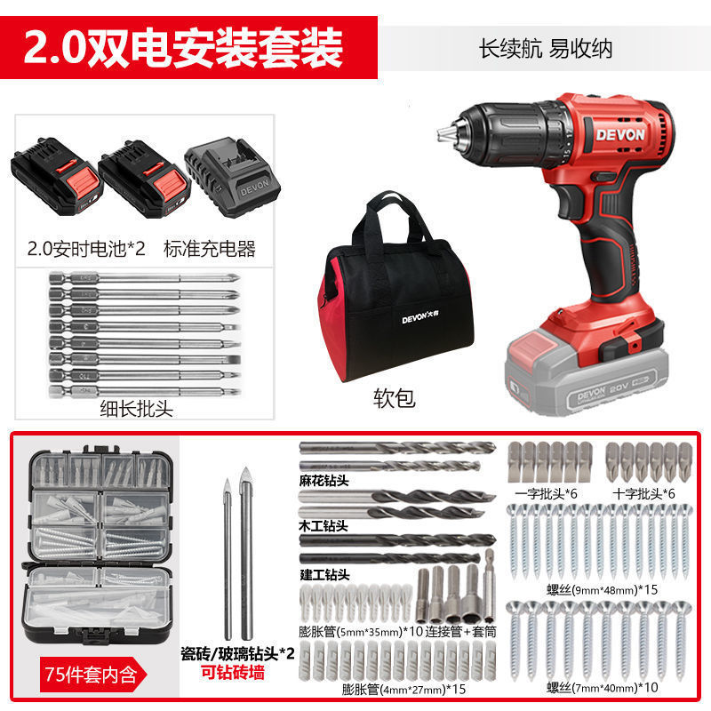 대형 전기 드릴 대형 토크 리튬 배터리 20V 다기능 전기 스크류 드릴 충전식 작은 손 전기 드릴 DD20스토어 가기