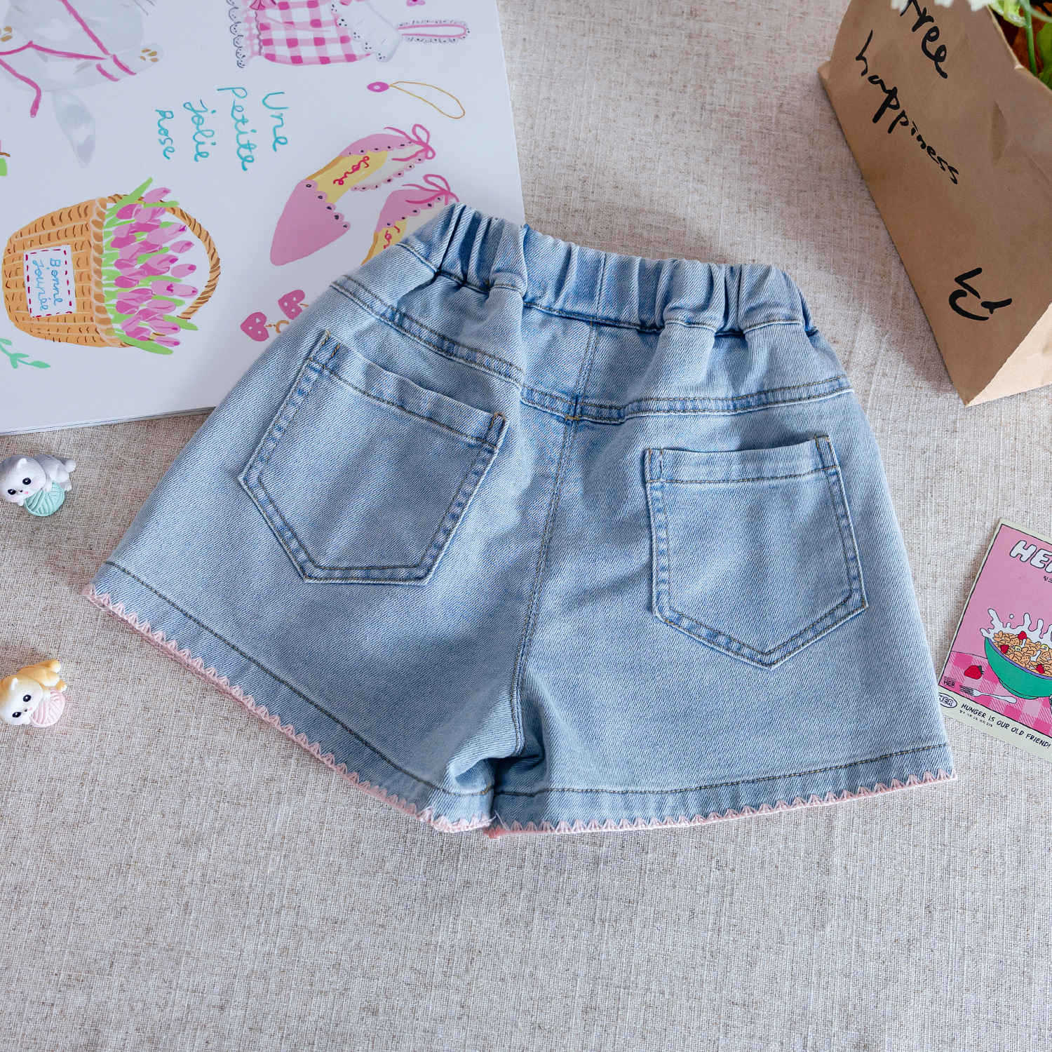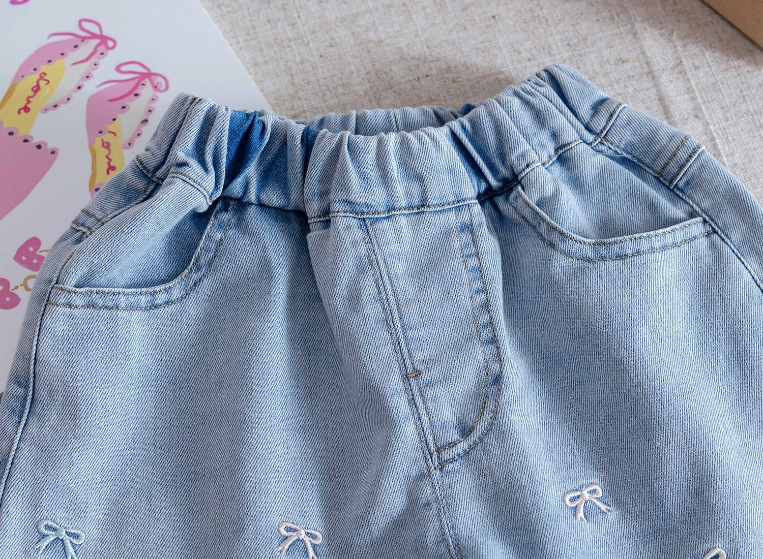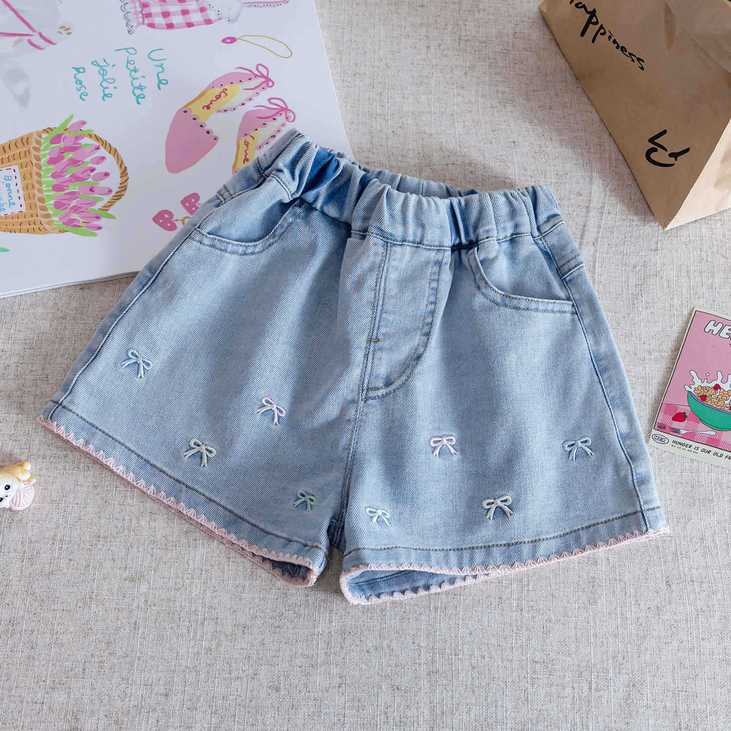 한국 아동복 소녀 2025 여름 활 자수 느슨한 청바지 반바지 얇은 바지 외부 착용 뜨거운 바지스토어 가기