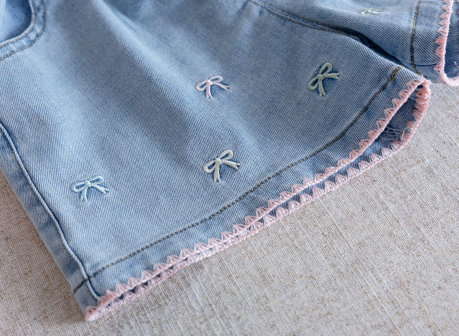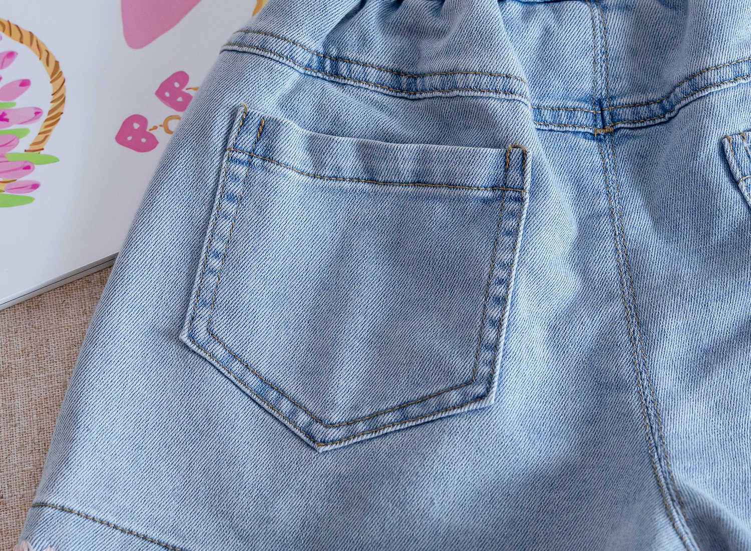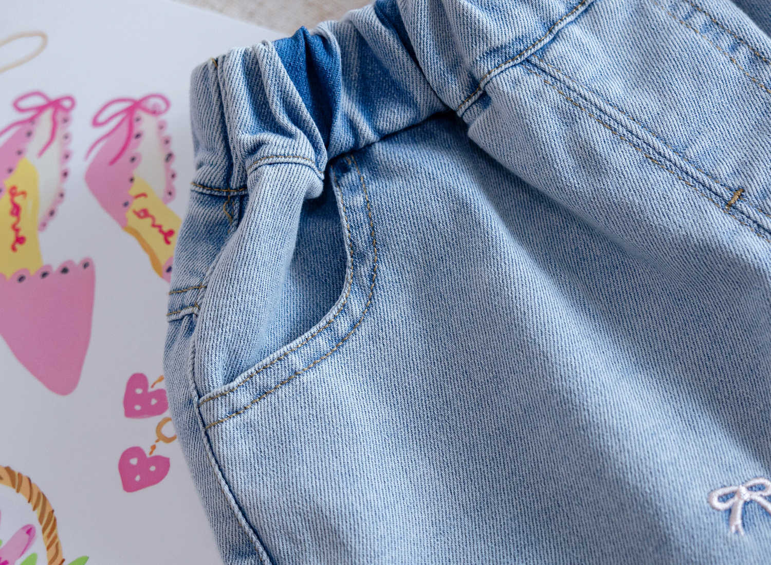 한국 아동복 소녀 2025 여름 활 자수 느슨한 청바지 반바지 얇은 바지 외부 착용 뜨거운 바지스토어 가기