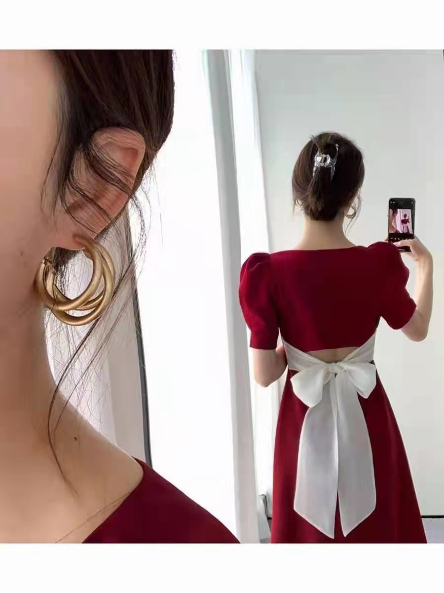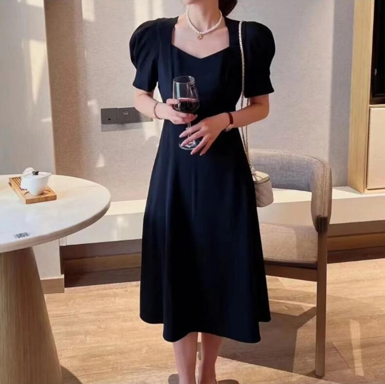 프렌치 레트로 헵번 스타일 블랙 우아한 반팔 원피스 여름 새로운 등 활 슬리밍 긴 스커트
