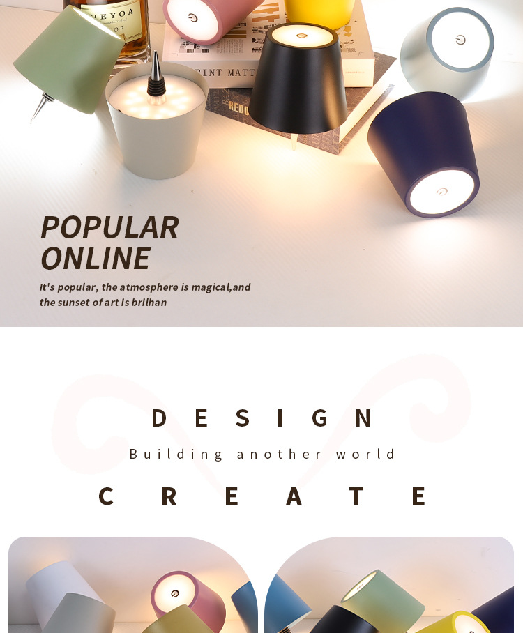 국경 간 충전 RGB 와인 병 램프 창조적 인 휴대용 테이블 램프 바 레스토랑 분위기 램프 대외 무역 이동식 캠핑 램프스토어 가기