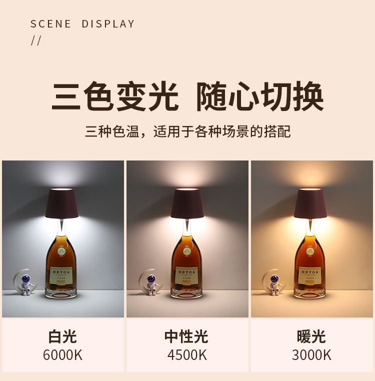 국경 간 충전 RGB 와인 병 램프 창조적 인 휴대용 테이블 램프 바 레스토랑 분위기 램프 대외 무역 이동식 캠핑 램프