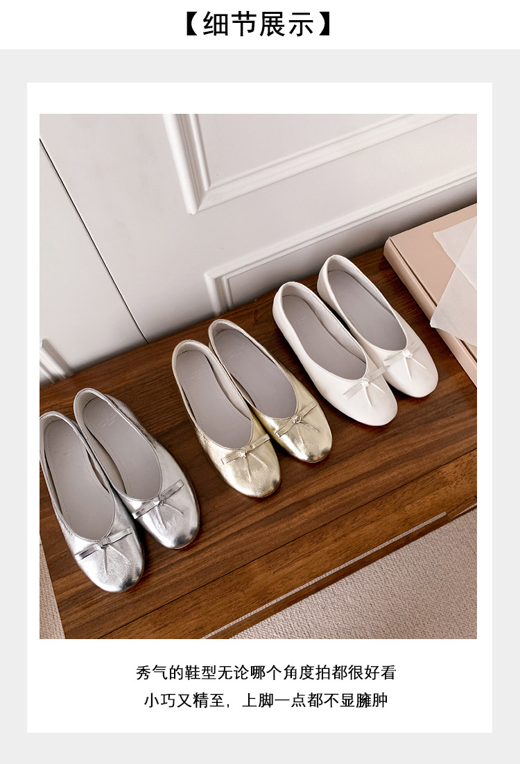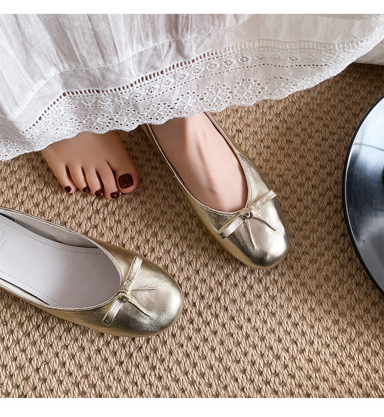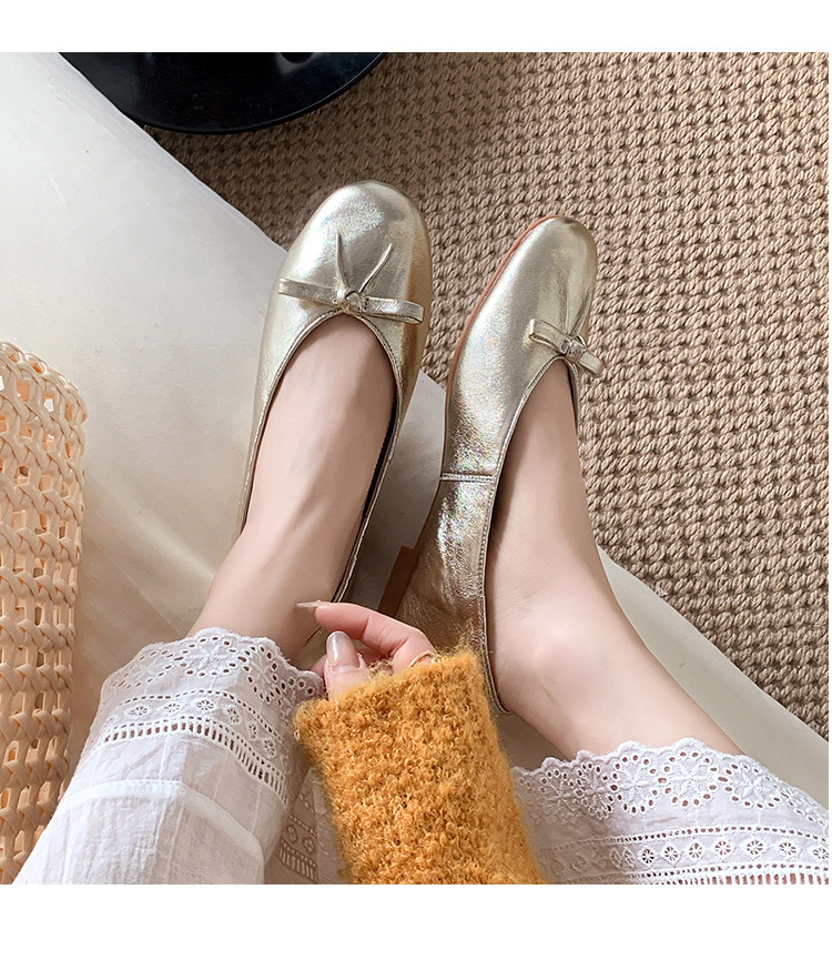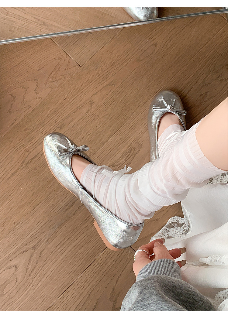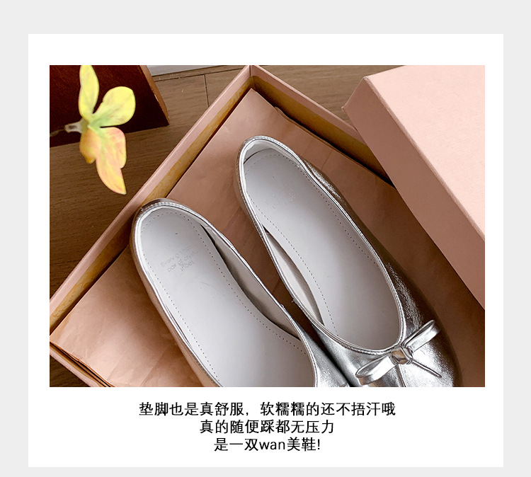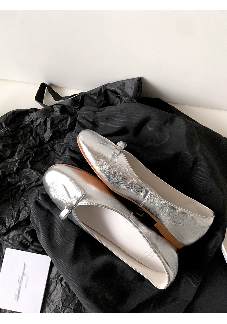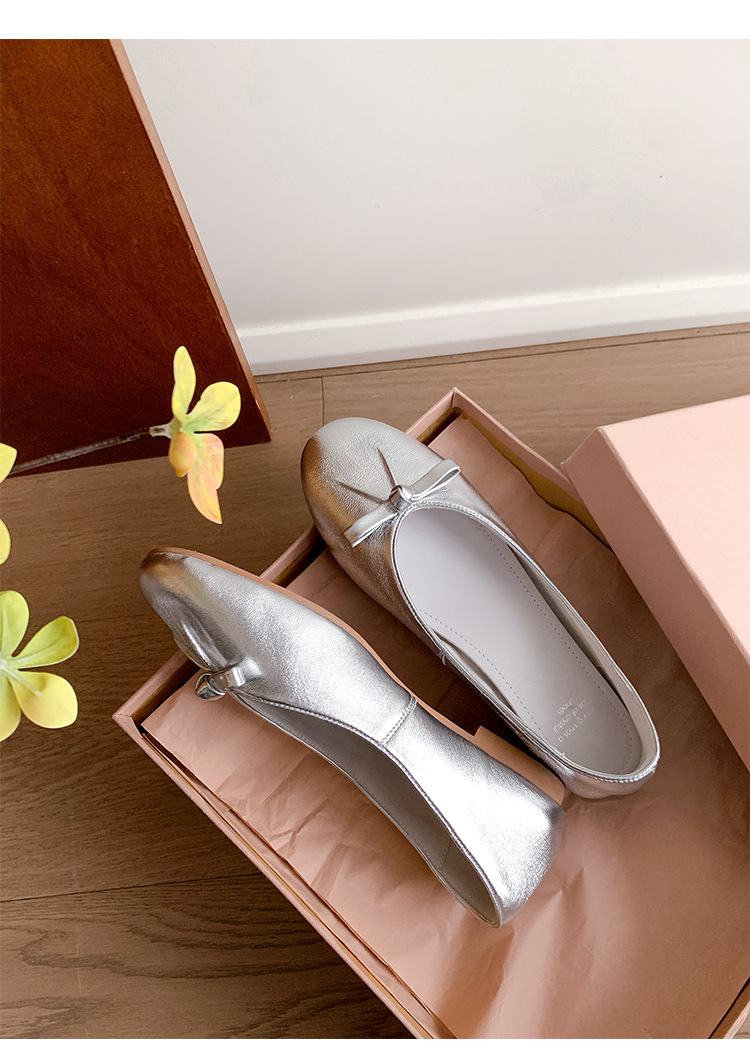 양가죽 버전 ~ 2025 여름 프랑스 달콤한 기질 얕은 입 실버 평평한 활 둥근 머리 메리 제인 신발 여성스토어 가기