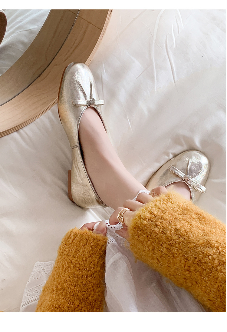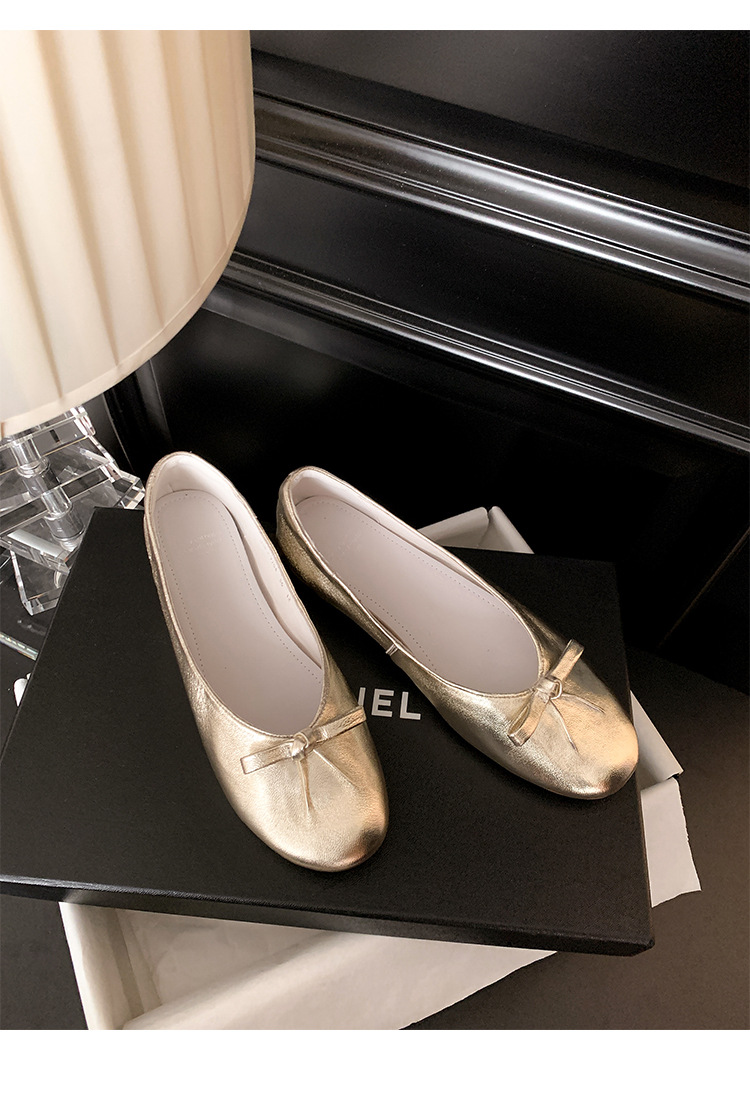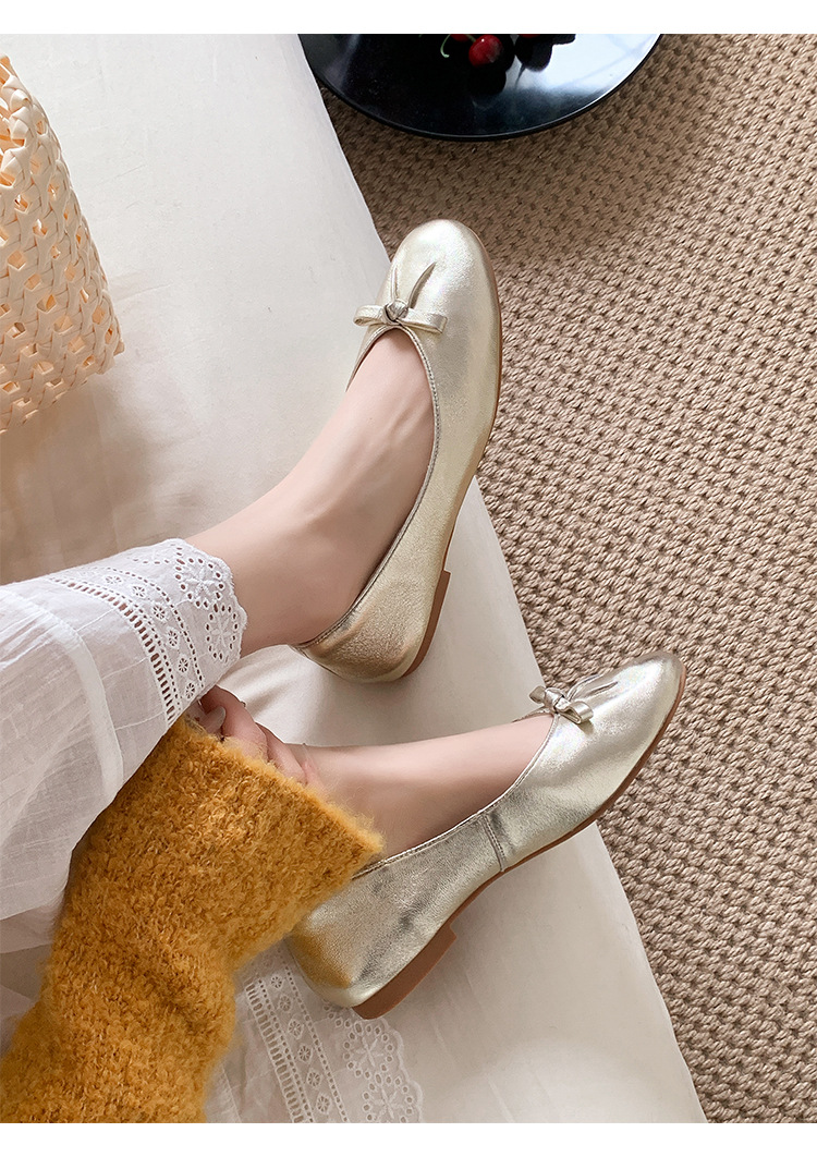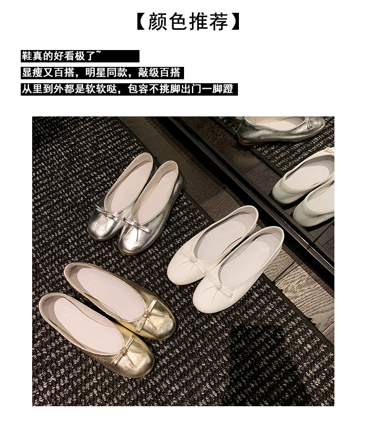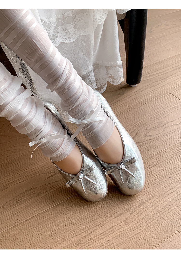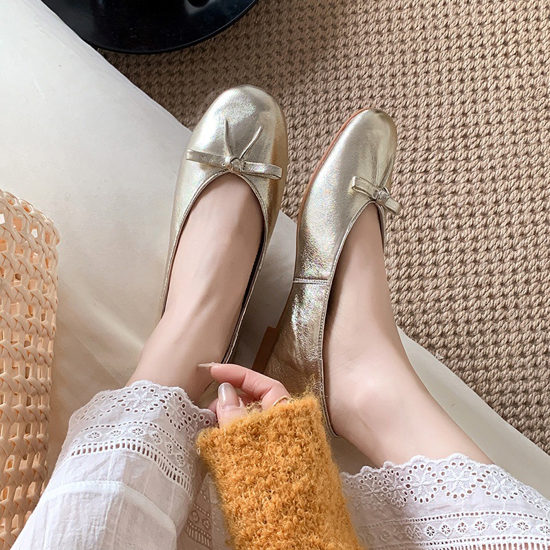 양가죽 버전 ~ 2025 여름 프랑스 달콤한 기질 얕은 입 실버 평평한 활 둥근 머리 메리 제인 신발 여성스토어 가기