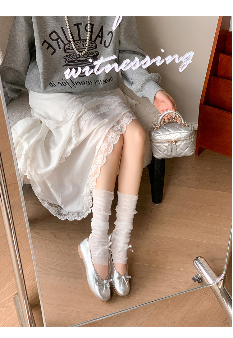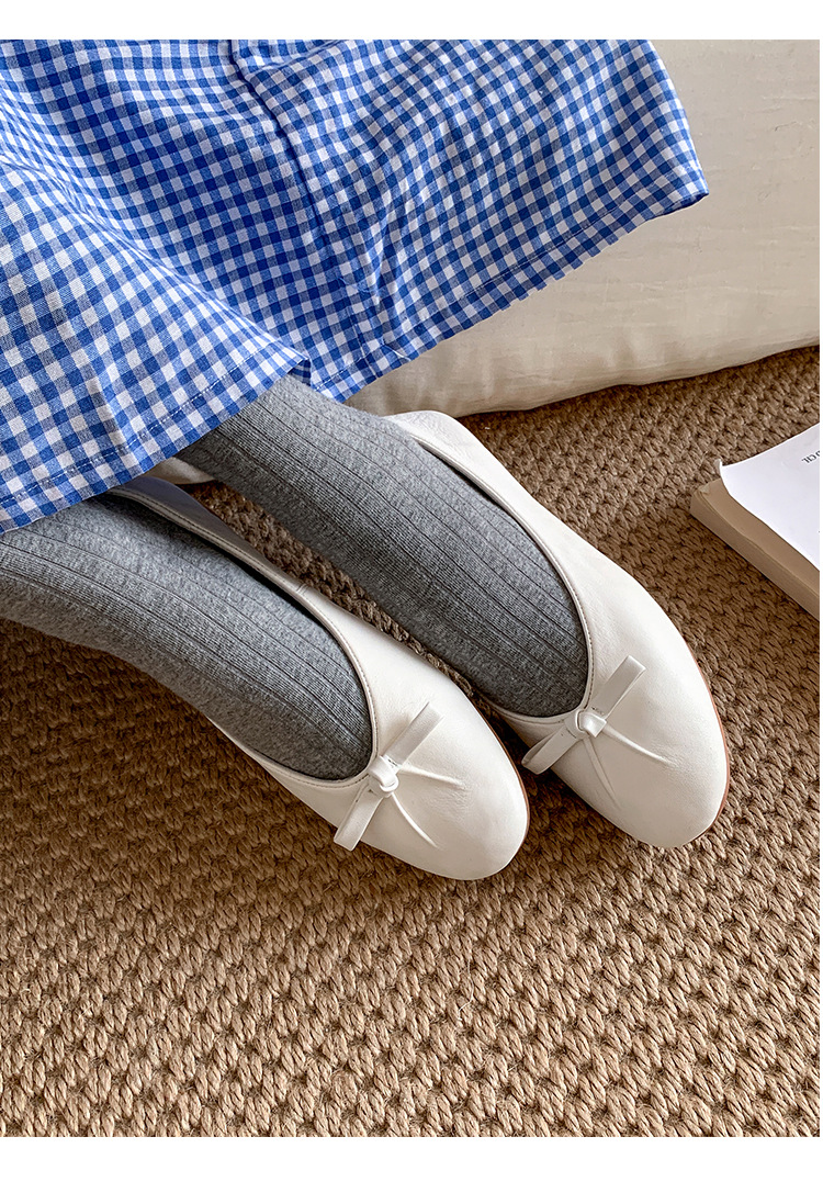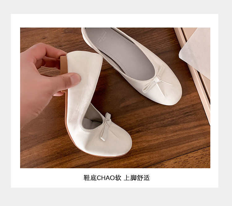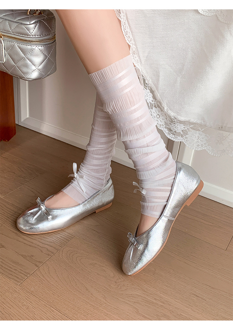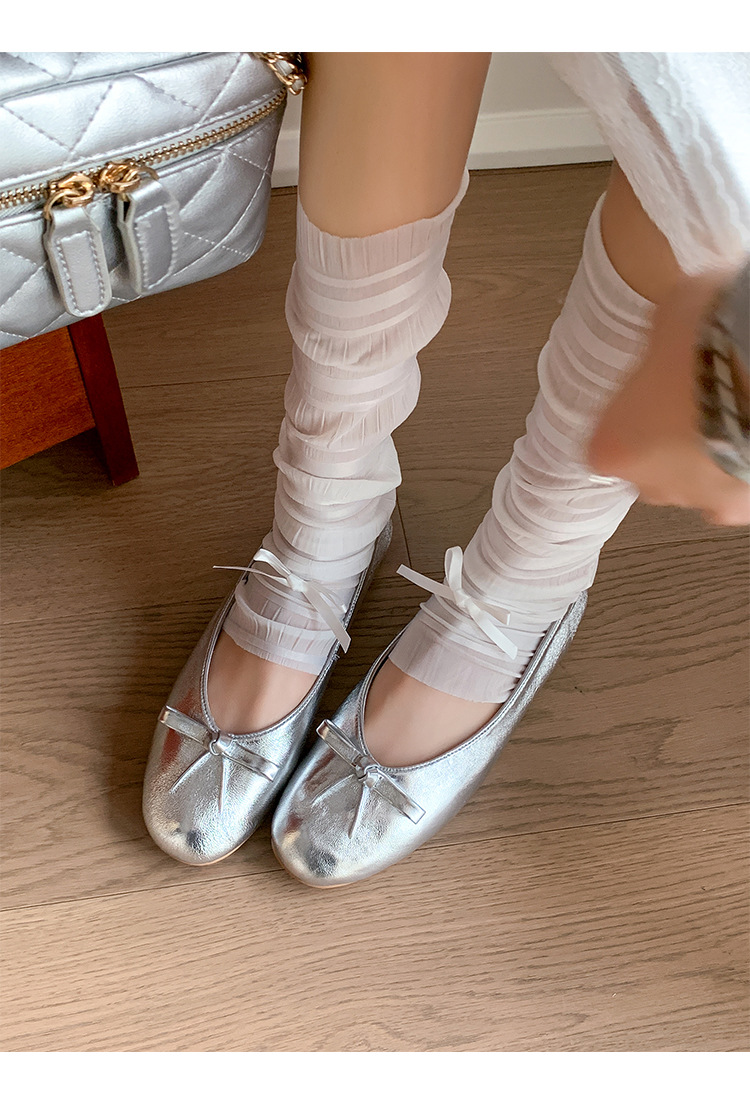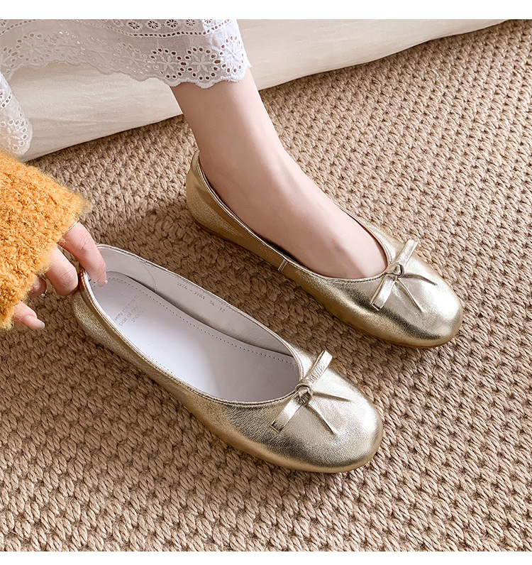 양가죽 버전 ~ 2025 여름 프랑스 달콤한 기질 얕은 입 실버 평평한 활 둥근 머리 메리 제인 신발 여성스토어 가기