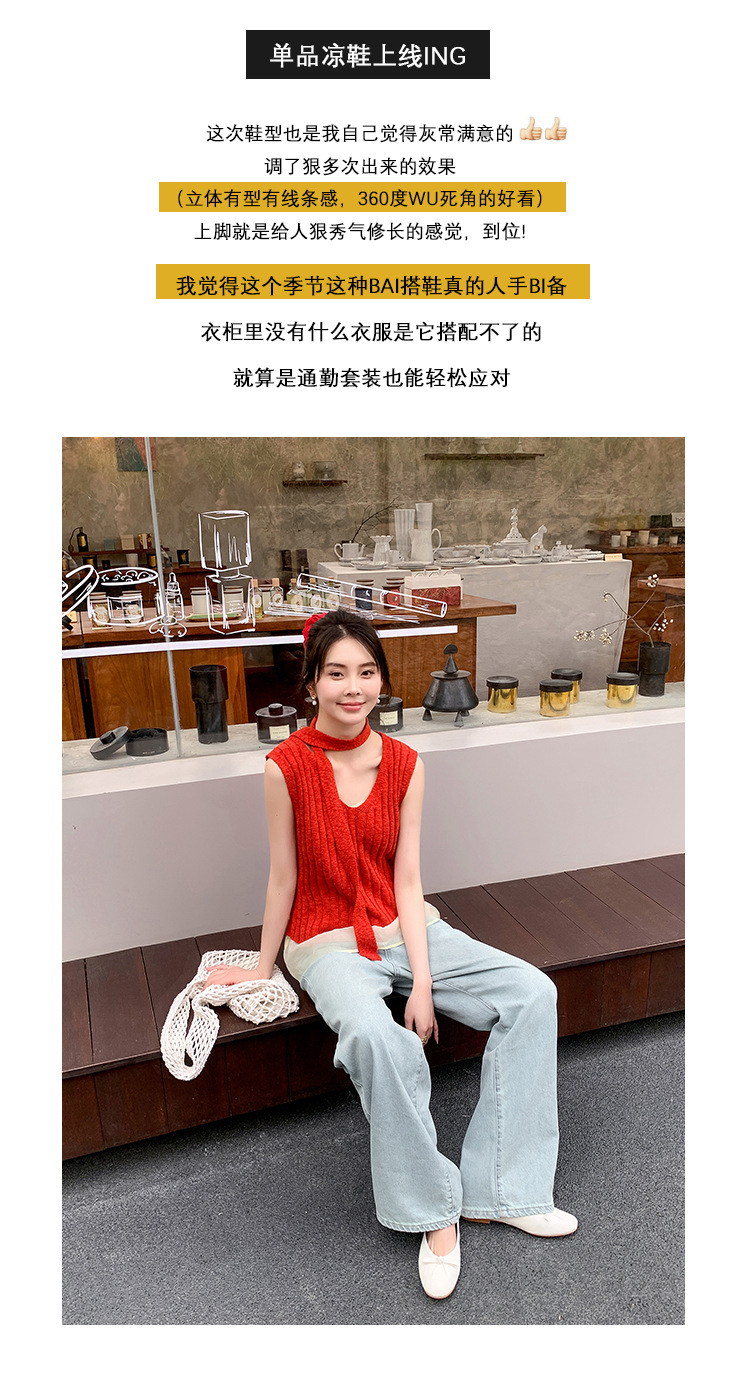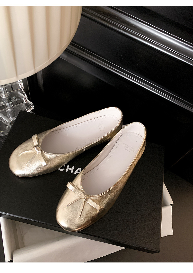 양가죽 버전 ~ 2025 여름 프랑스 달콤한 기질 얕은 입 실버 평평한 활 둥근 머리 메리 제인 신발 여성