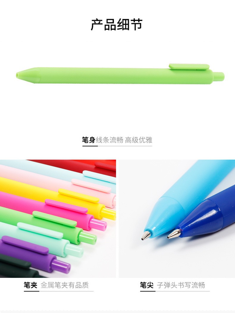 공장 도매 마카롱 컬러 간단한 프레스 타입 인쇄 가능한 로고 플라스틱 스프레이 볼 포인트 펜 젤 펜스토어 가기