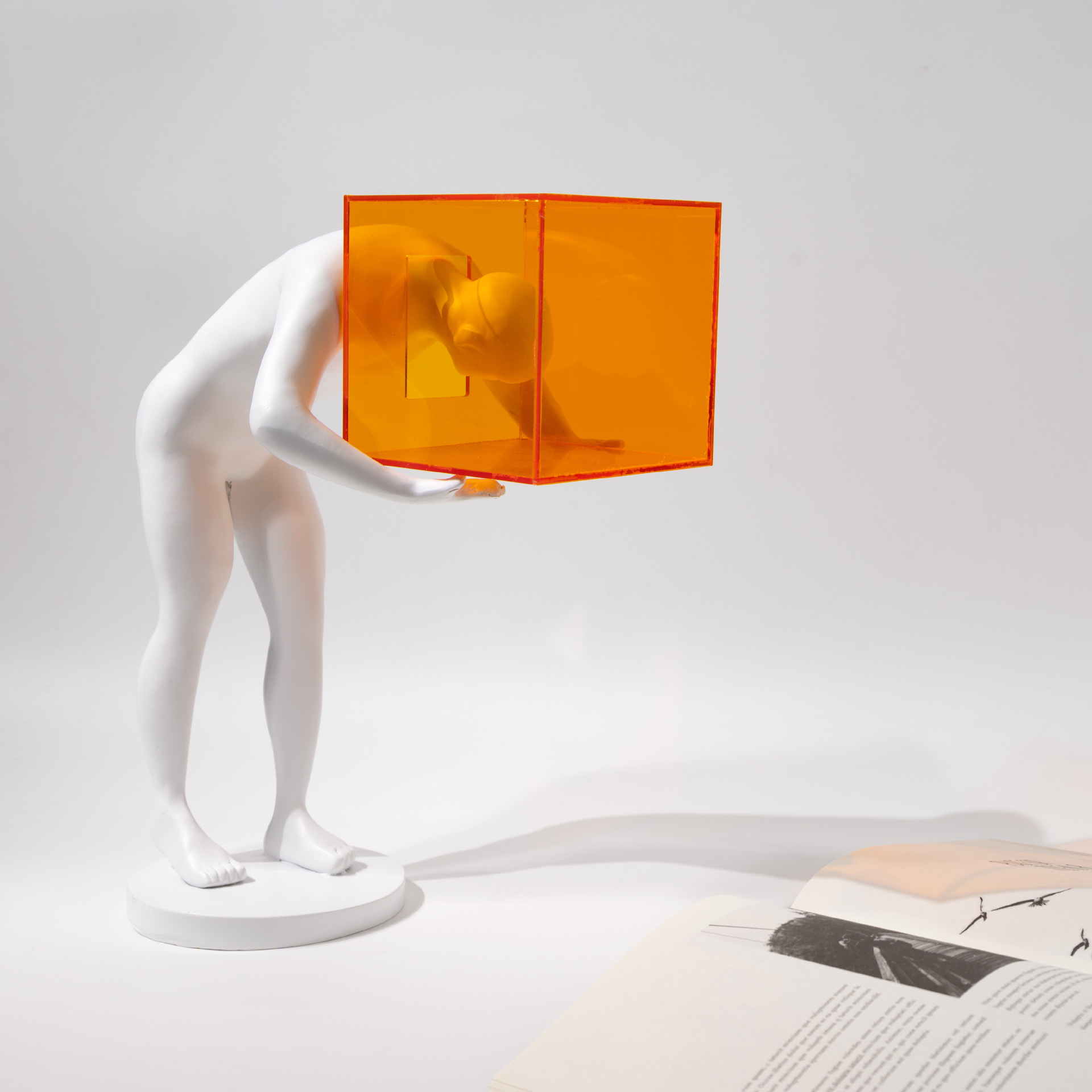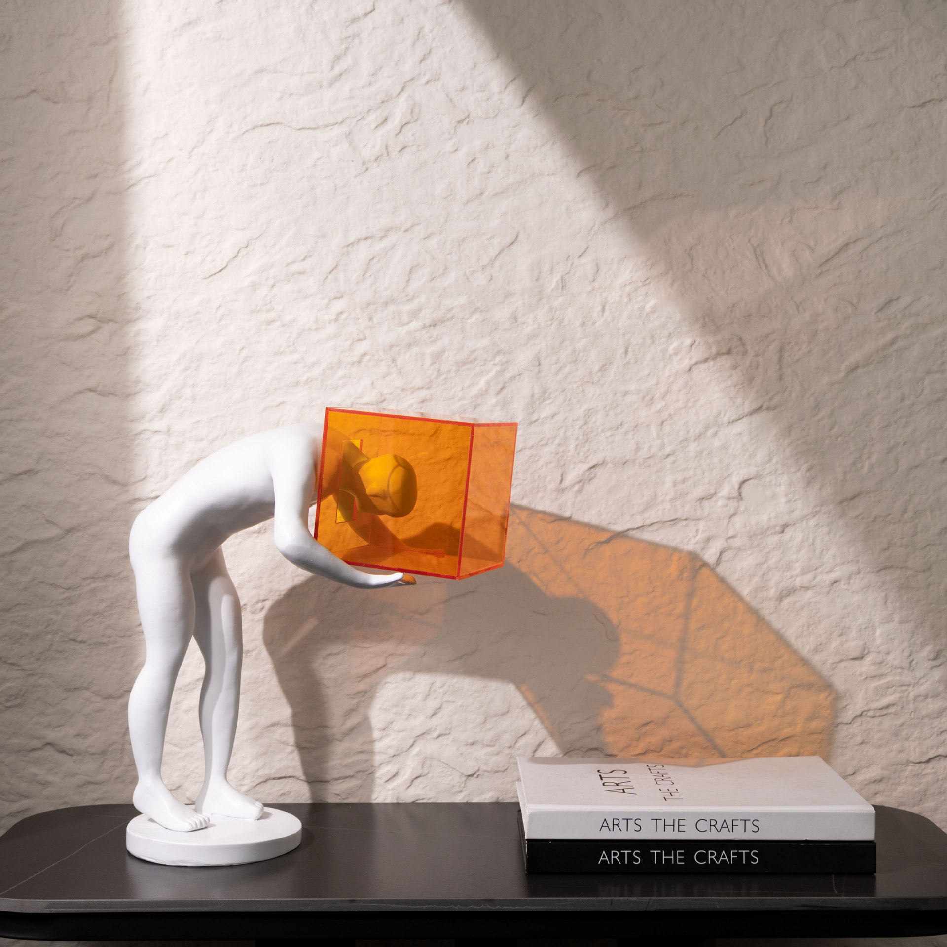 현대 간단한 아크릴 오렌지 케이지 그림 조각 수지 장식품 거실 입구 호텔 홈 장식