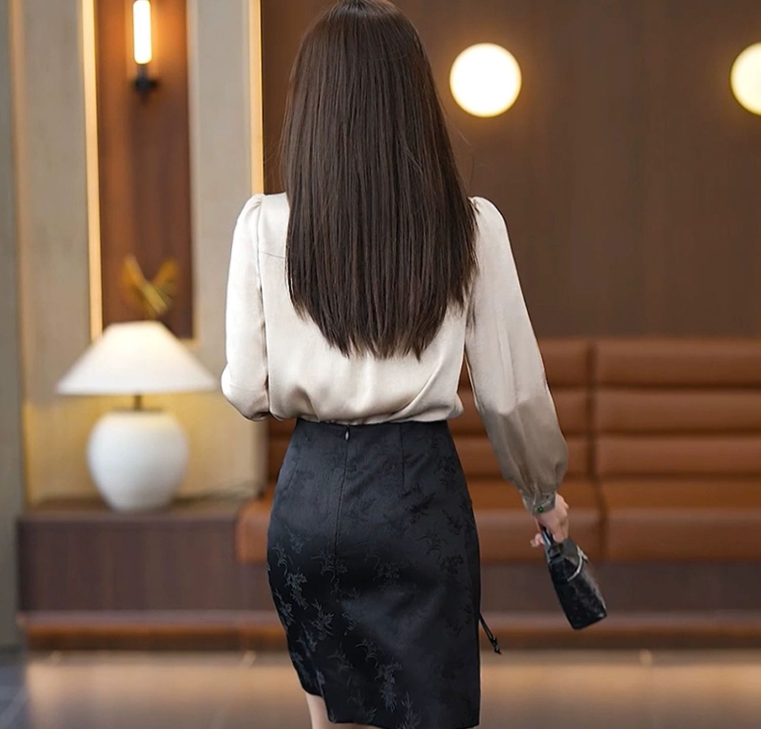 여성을위한 복고풍 새로운 중국 스타일 국가 스타일 수 놓은 느슨한 긴팔 셔츠 봄 2025 자카드 새틴 디자인 캐주얼 탑스토어 가기