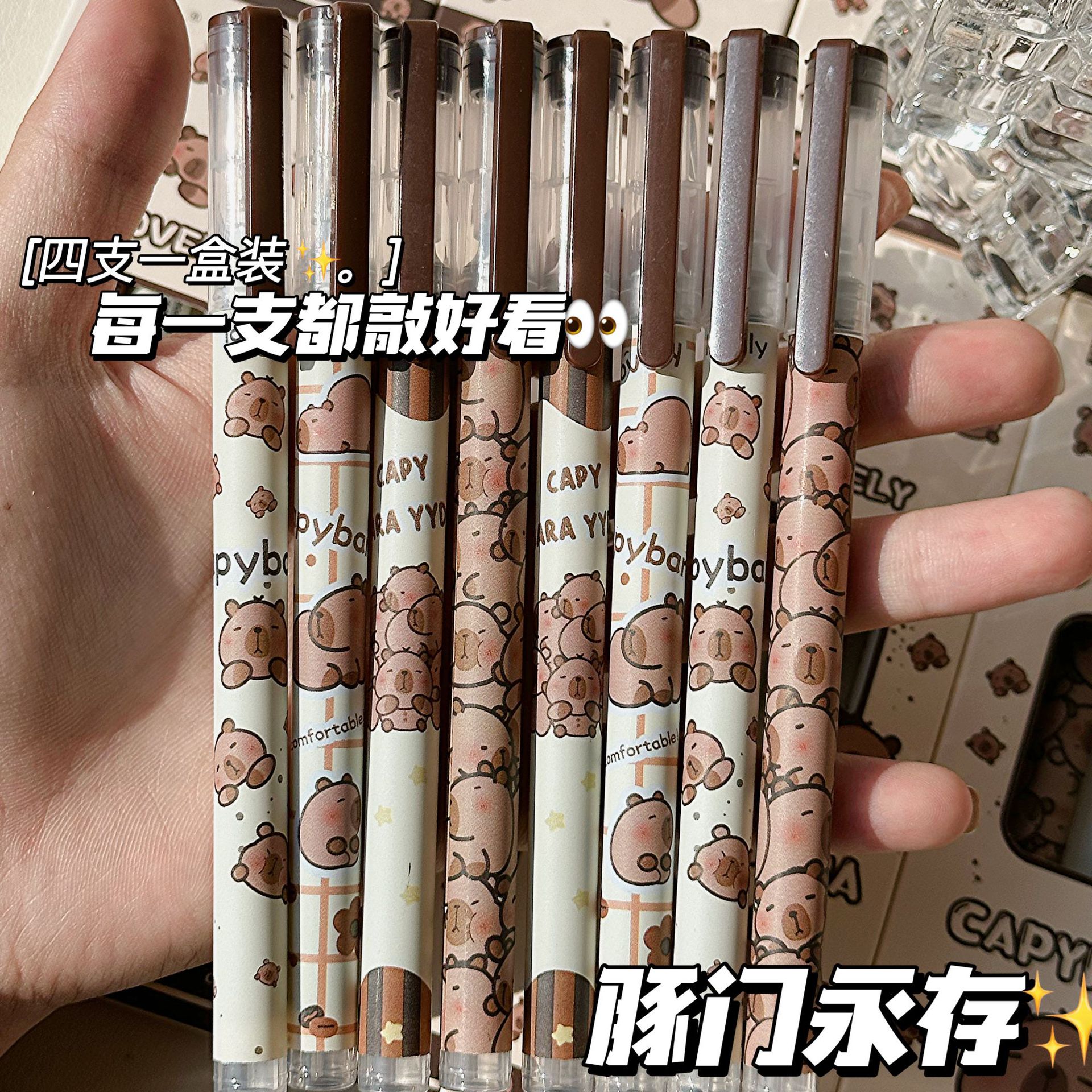 고급스러운 카피바라 만화 학생 시험용 직선형 액체 볼펜 0.5 간단하고 부드러운 젤펜스토어 가기