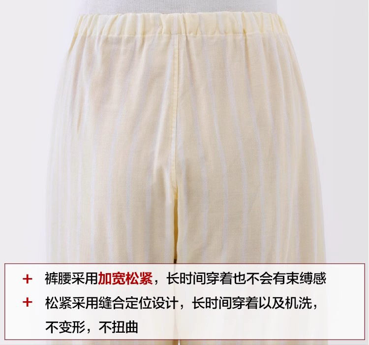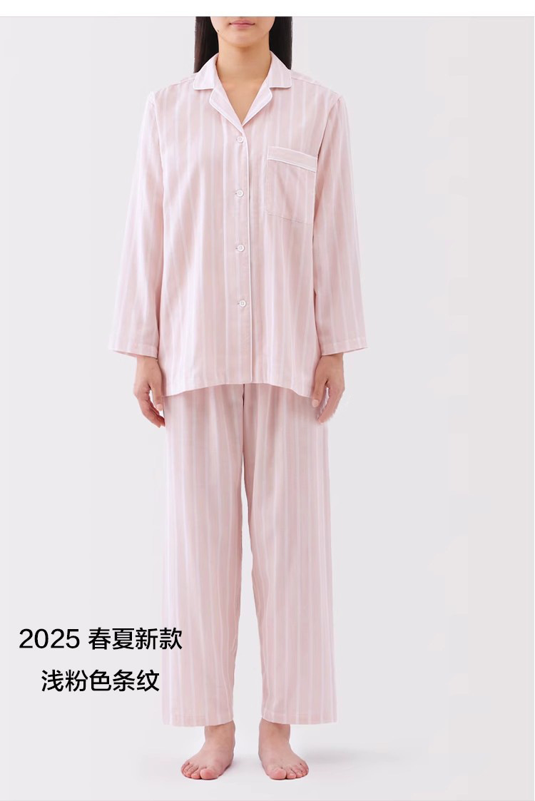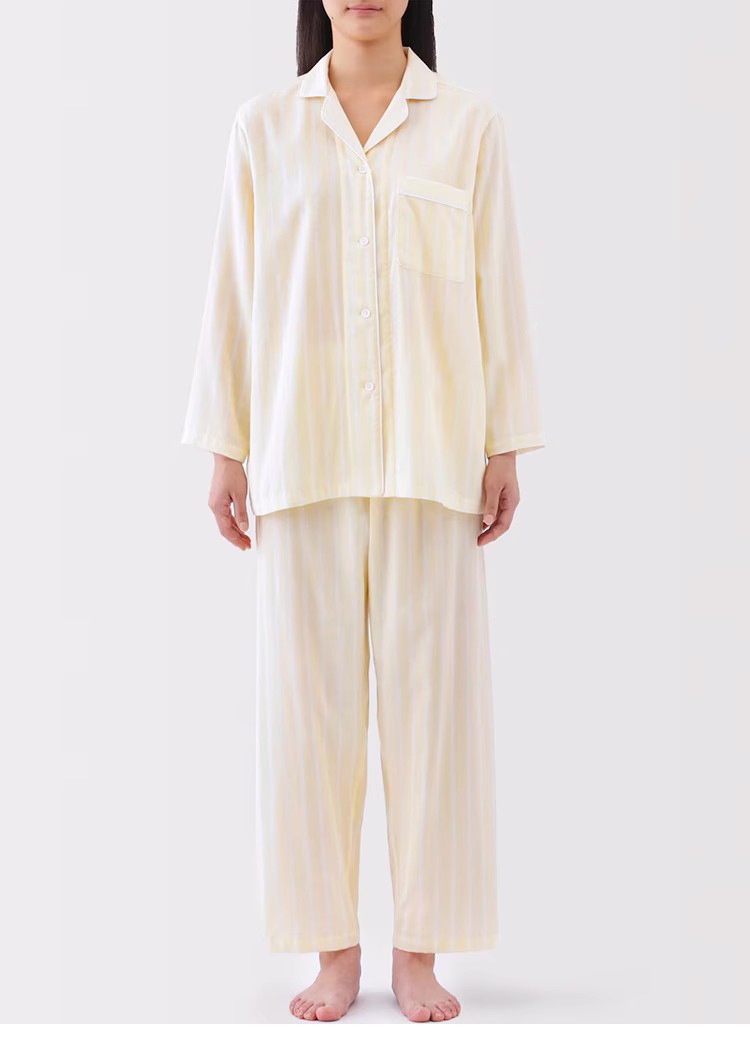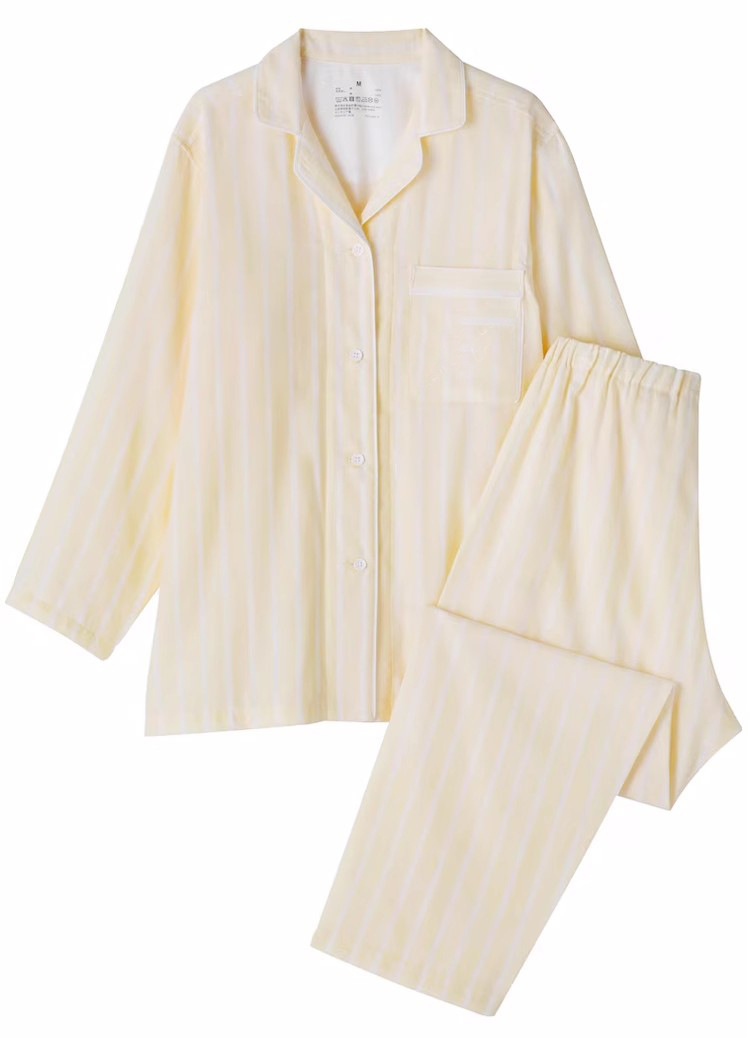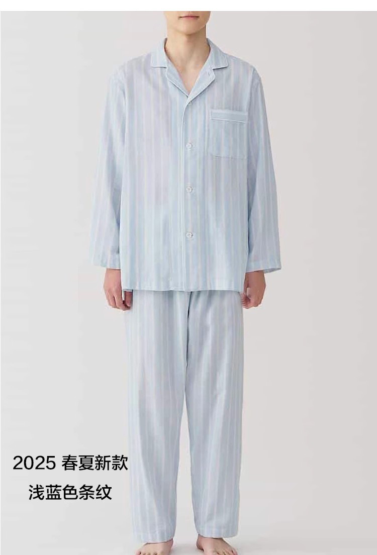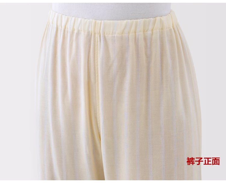 일본 무인쇄 순면 더블 레이어 거즈 잠옷 여성용 스트라이프 사이드 심리스 홈웨어 세트 남성용 긴팔 얇은 봄 여름스토어 가기