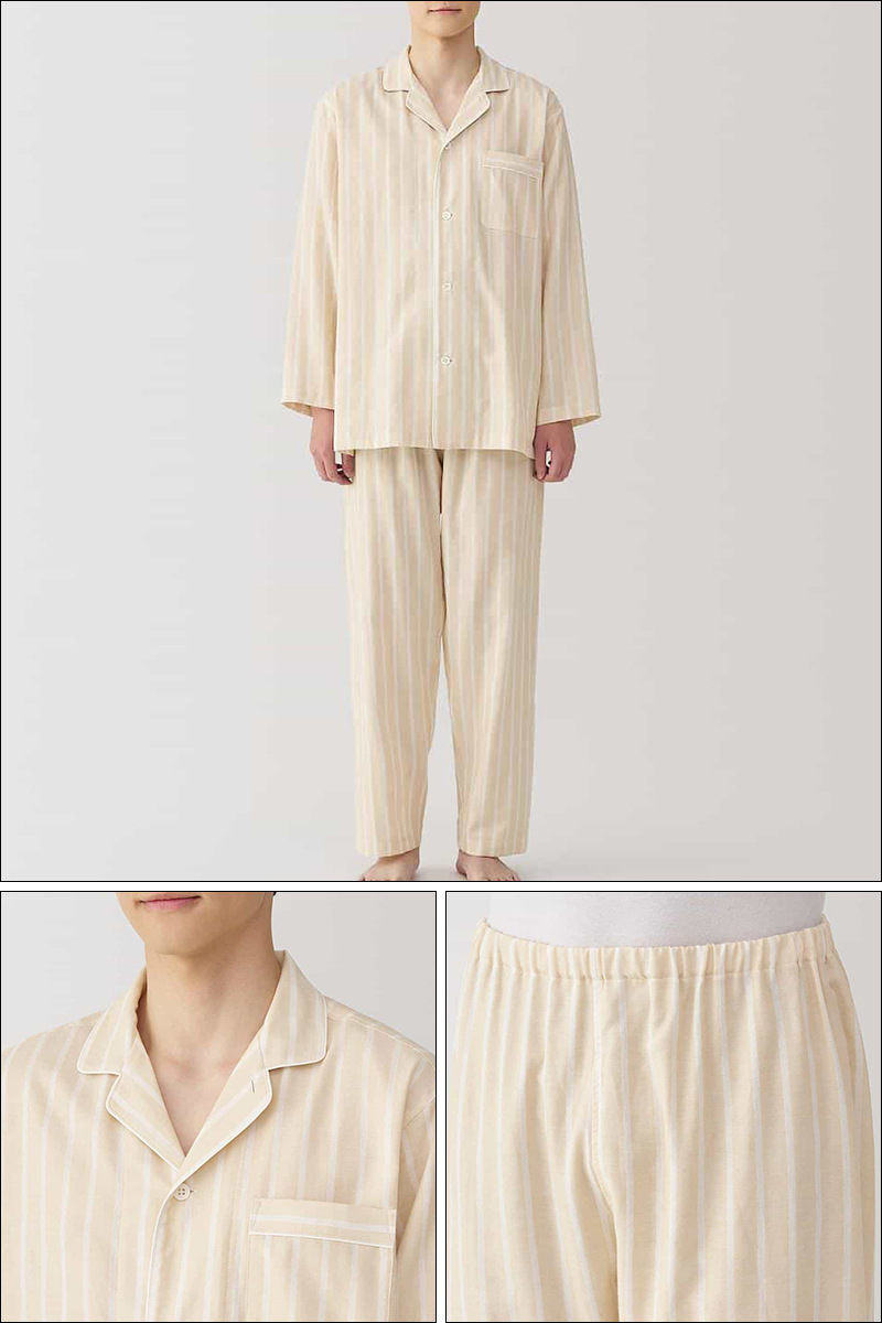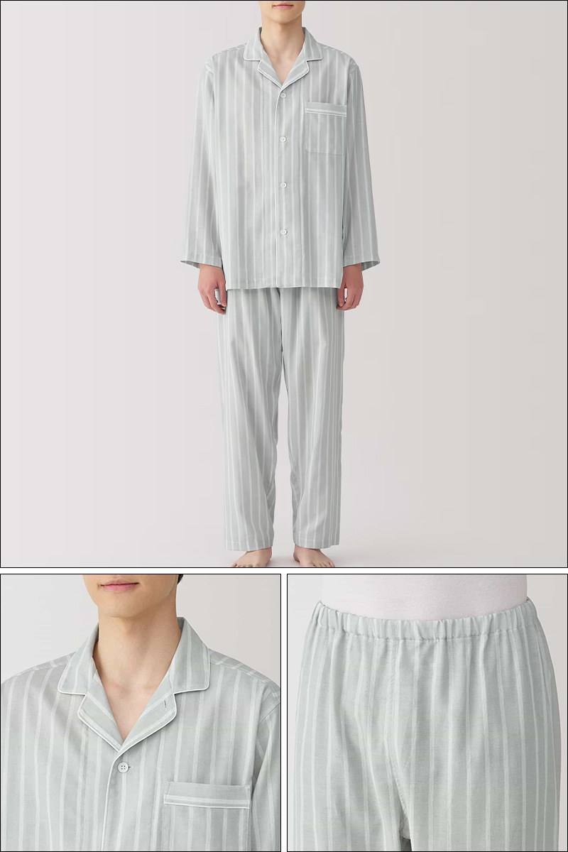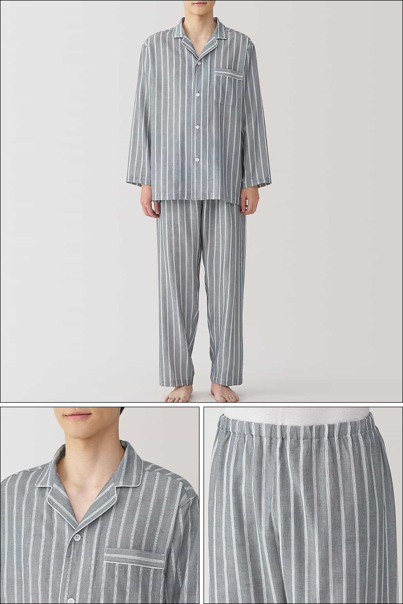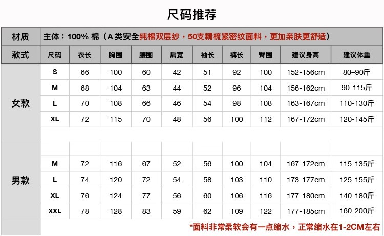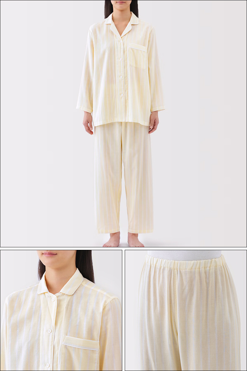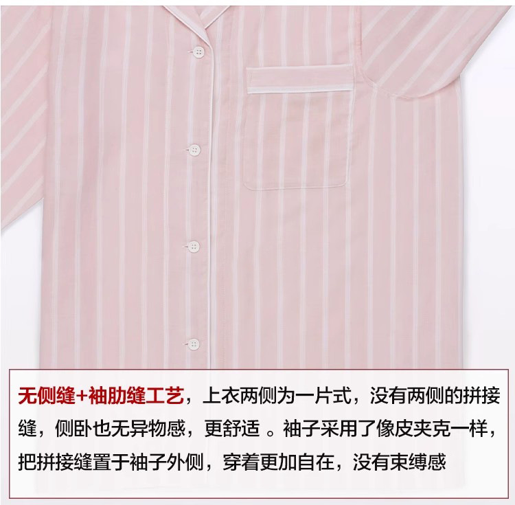 일본 무인쇄 순면 더블 레이어 거즈 잠옷 여성용 스트라이프 사이드 심리스 홈웨어 세트 남성용 긴팔 얇은 봄 여름스토어 가기