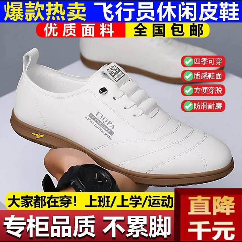 Hengzhi의 새로운 슬립온 남성 신발 2025 봄 인기 파일럿 캐주얼 가죽 신발 남성 통기성 운전 신발스토어 가기