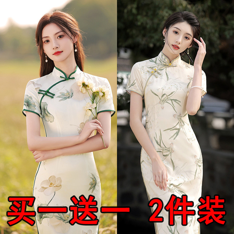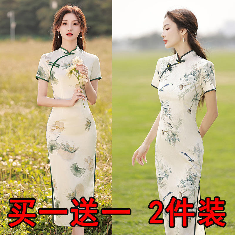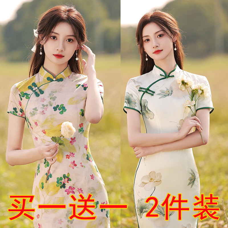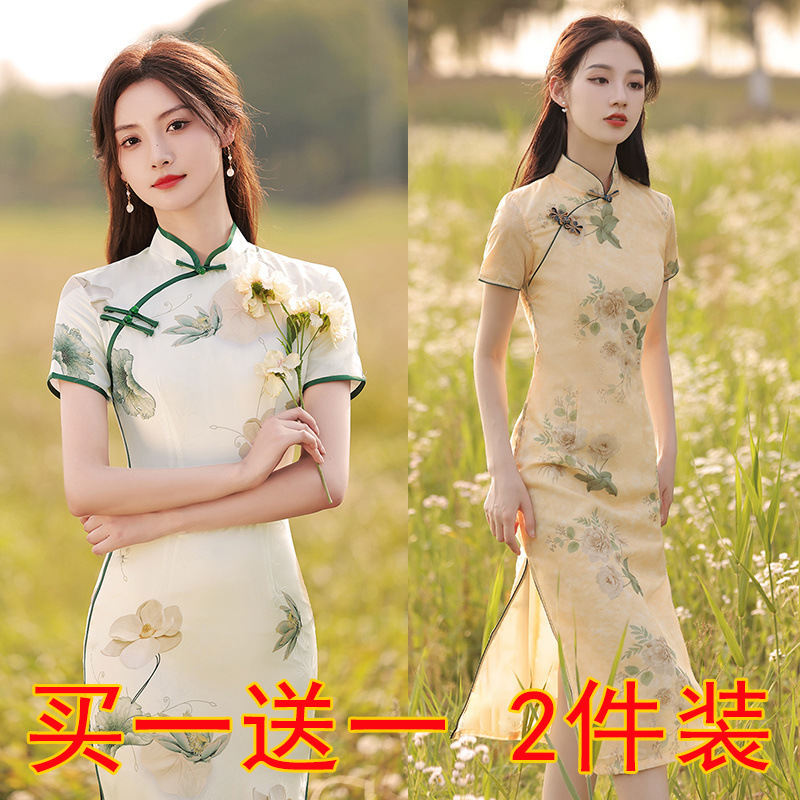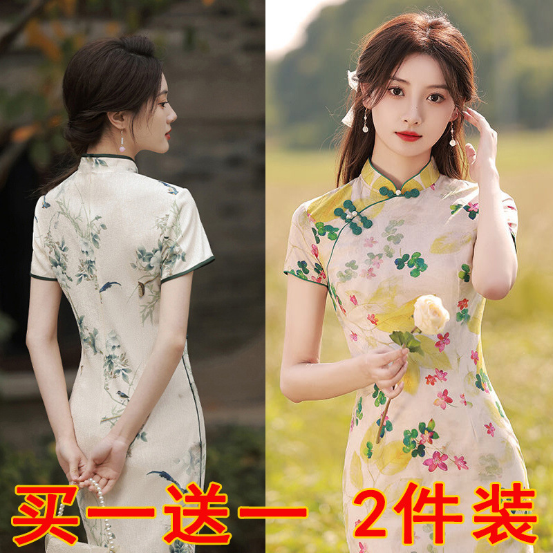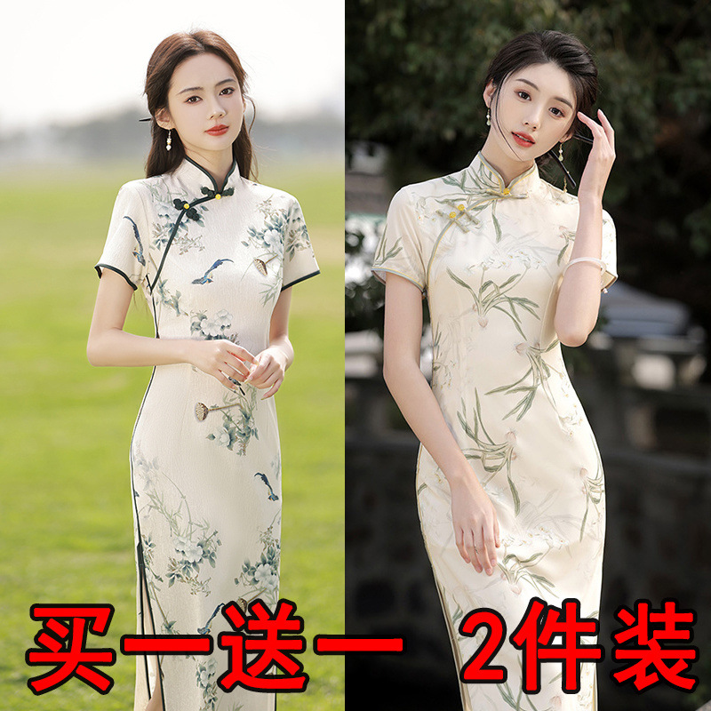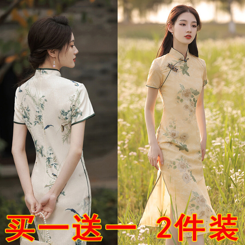 싱글 투피스 여름 슬리밍 청삼 여성의 새로운 2025 젊은 스타일 국가 스타일 중간 길이의 새로운 중국 스타일 원피스스토어 가기