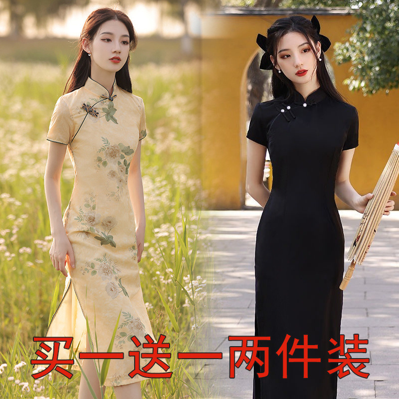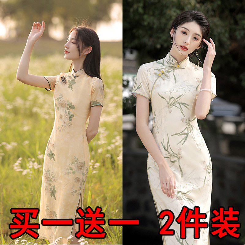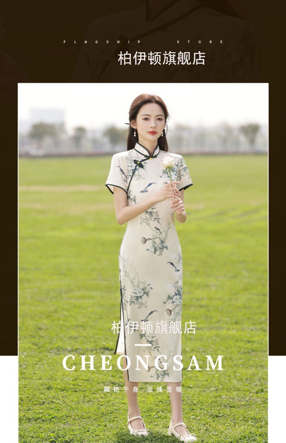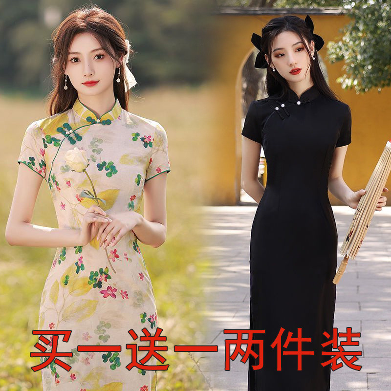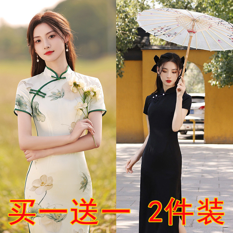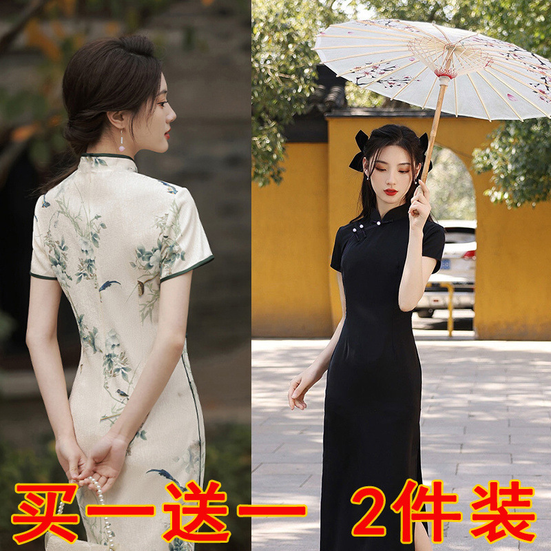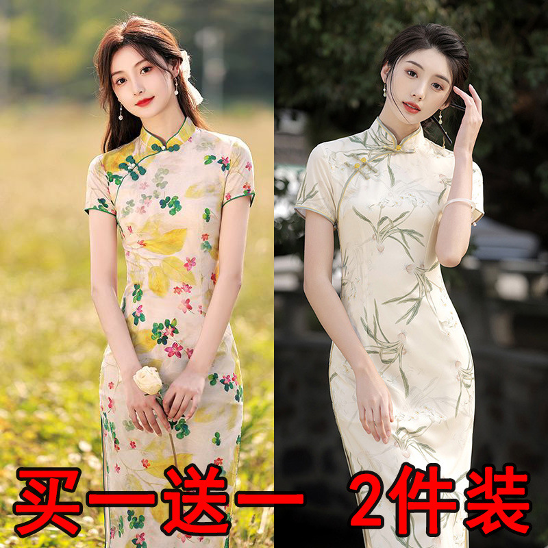 싱글 투피스 여름 슬리밍 청삼 여성의 새로운 2025 젊은 스타일 국가 스타일 중간 길이의 새로운 중국 스타일 원피스스토어 가기