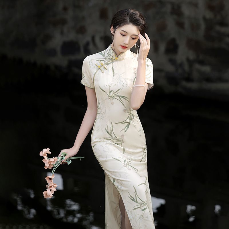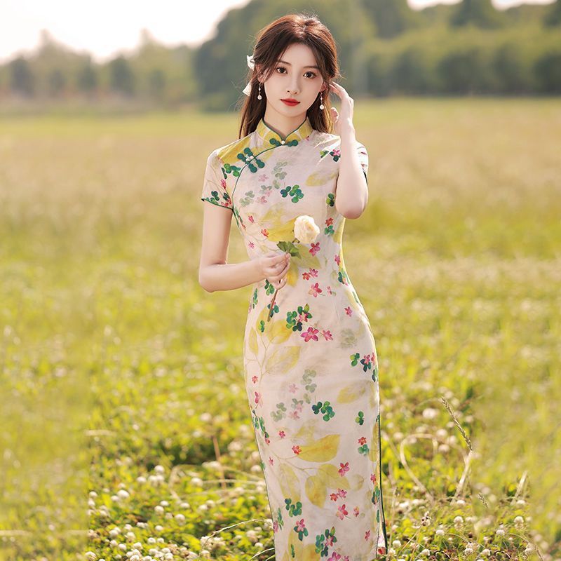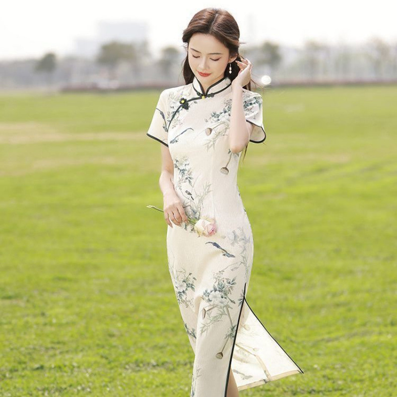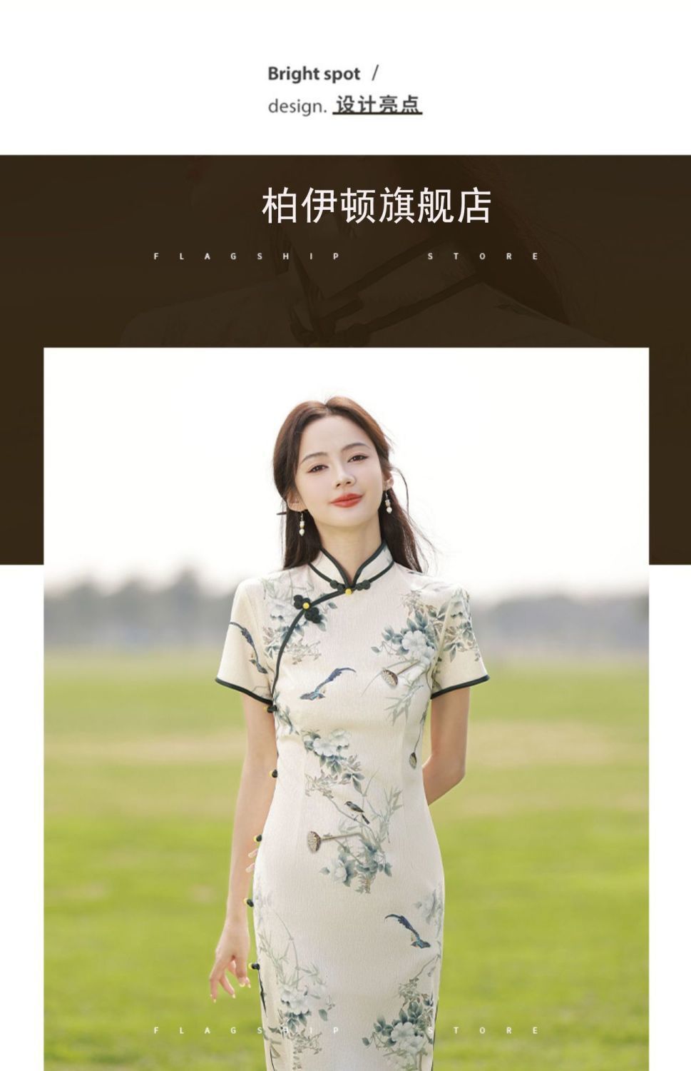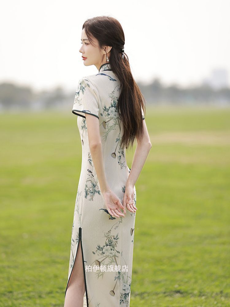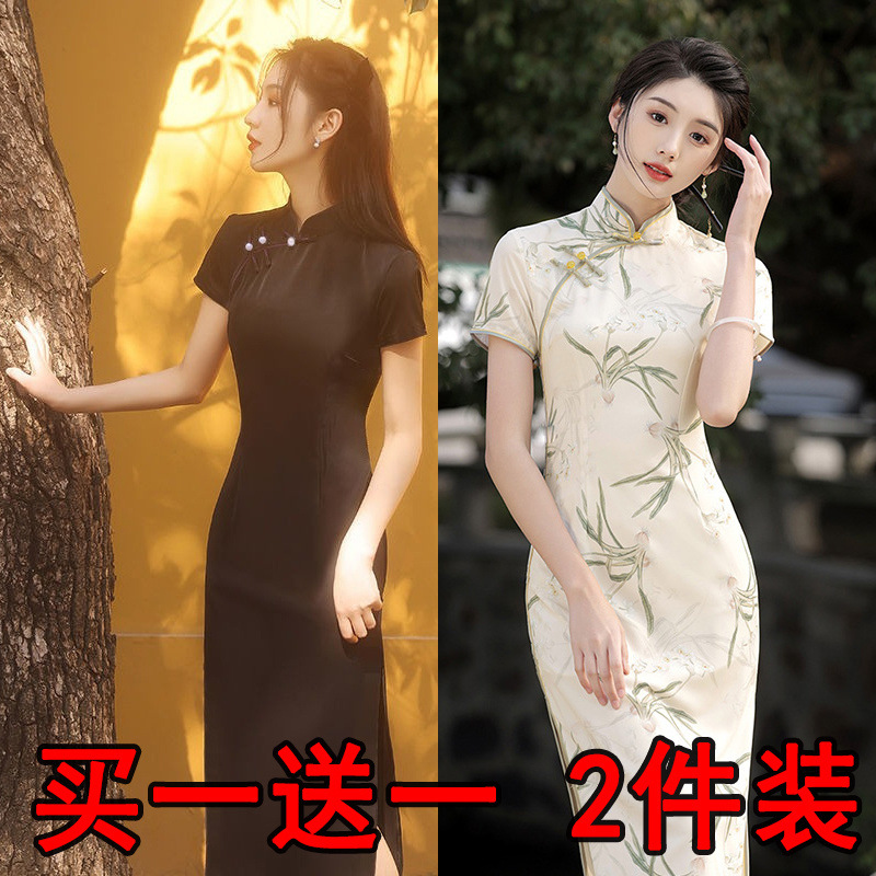 싱글 투피스 여름 슬리밍 청삼 여성의 새로운 2025 젊은 스타일 국가 스타일 중간 길이의 새로운 중국 스타일 원피스스토어 가기