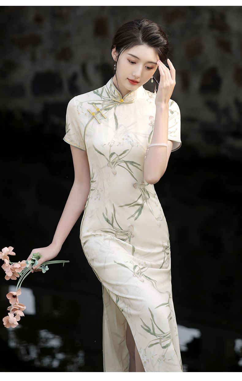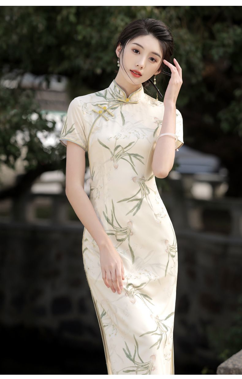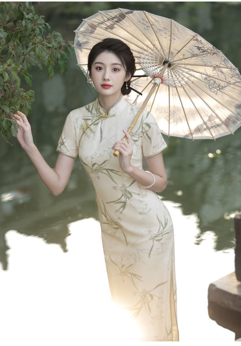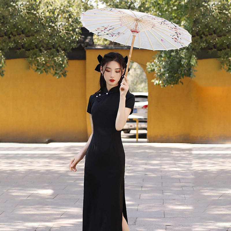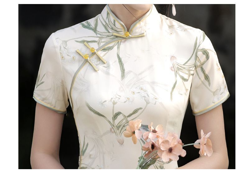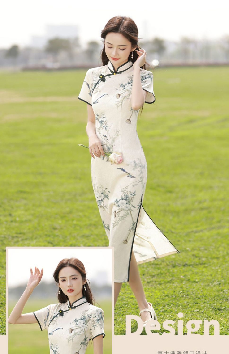 싱글 투피스 여름 슬리밍 청삼 여성의 새로운 2025 젊은 스타일 국가 스타일 중간 길이의 새로운 중국 스타일 원피스스토어 가기
