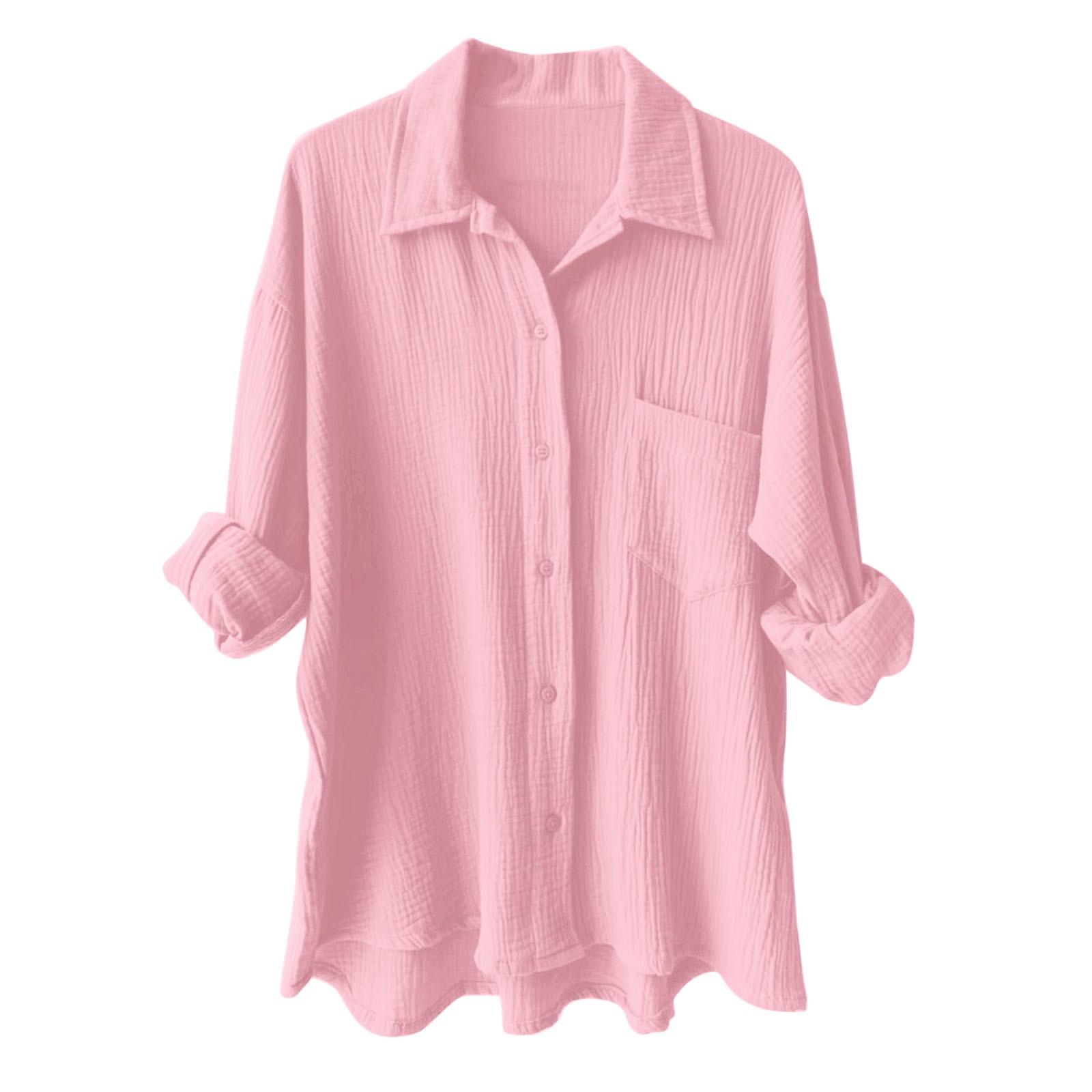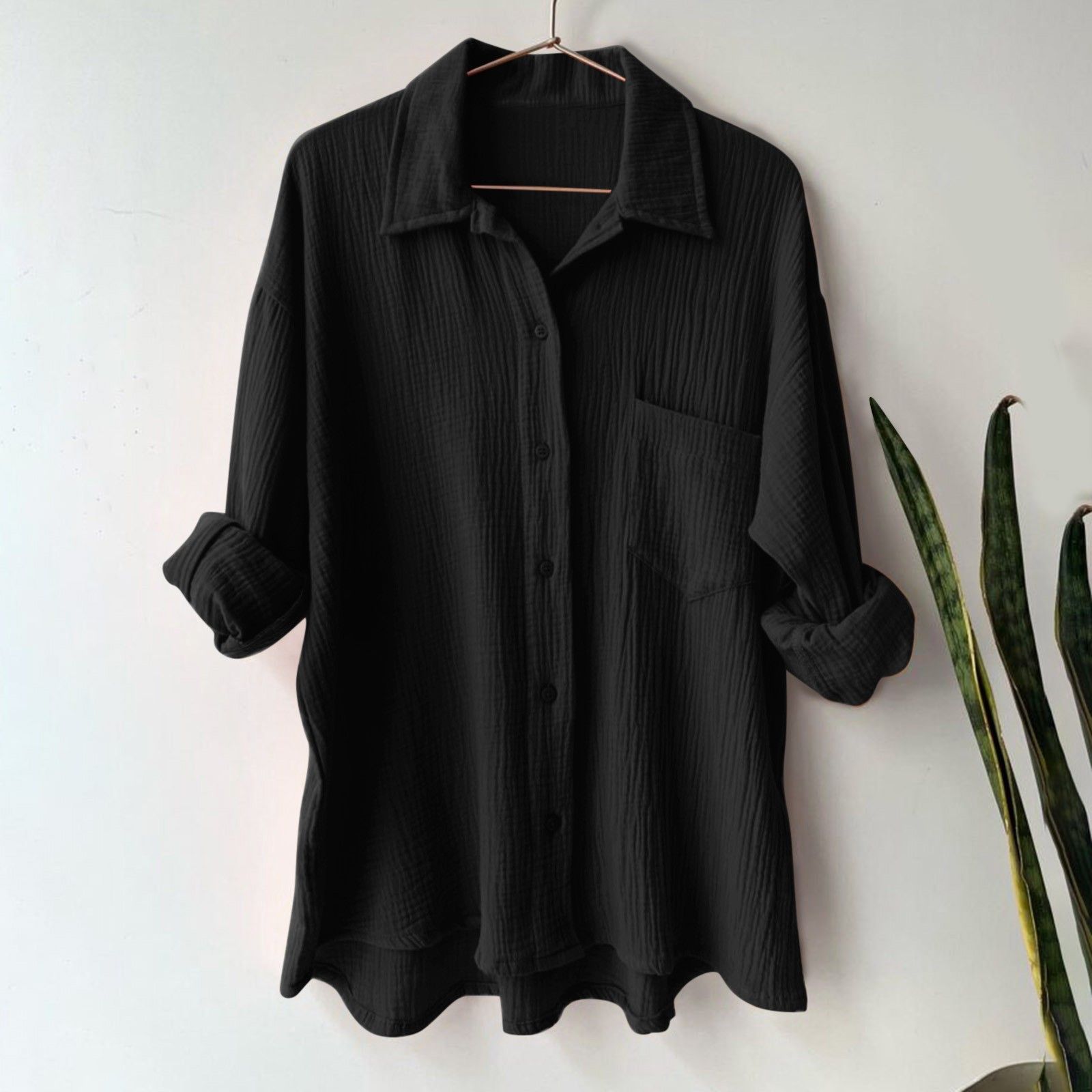 Amazon Shupaitong 유럽과 미국의 단색 여성 주름 천 느슨한 옷깃 긴팔 셔츠 패션 캐주얼 탑