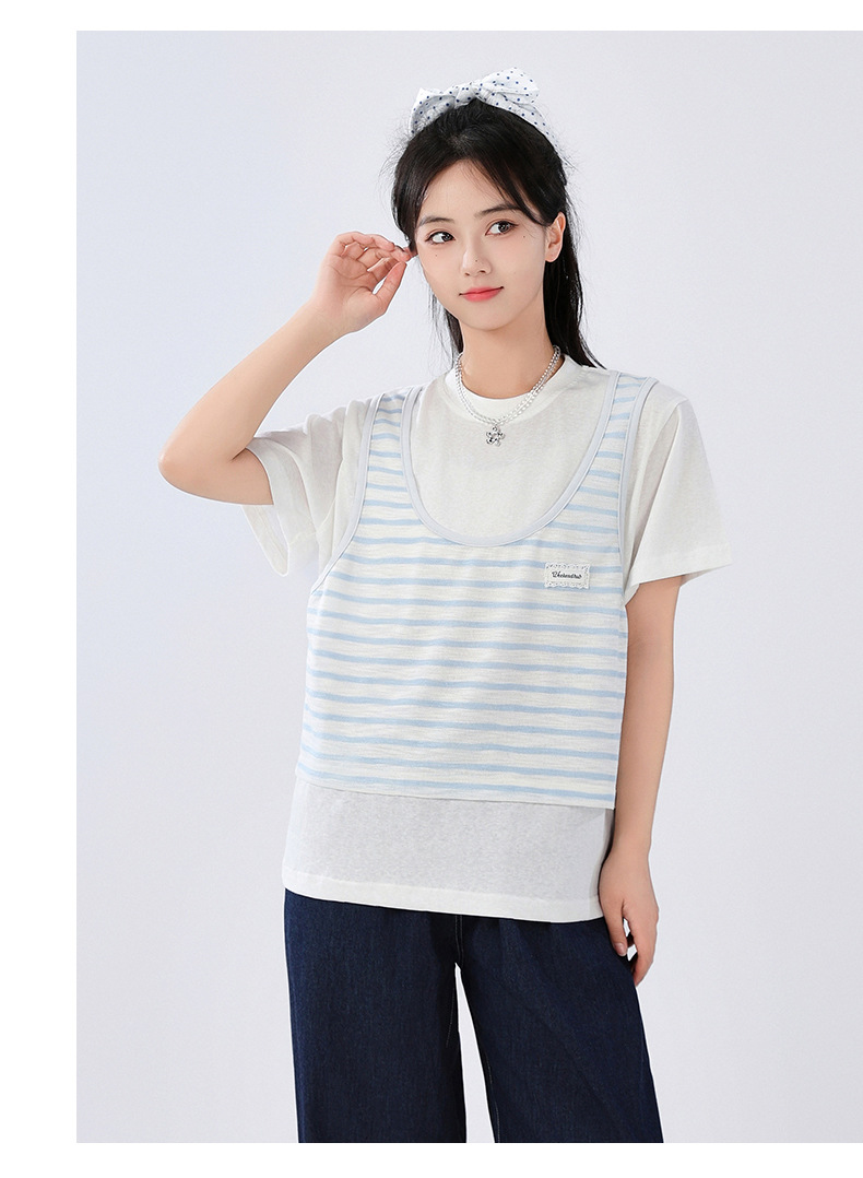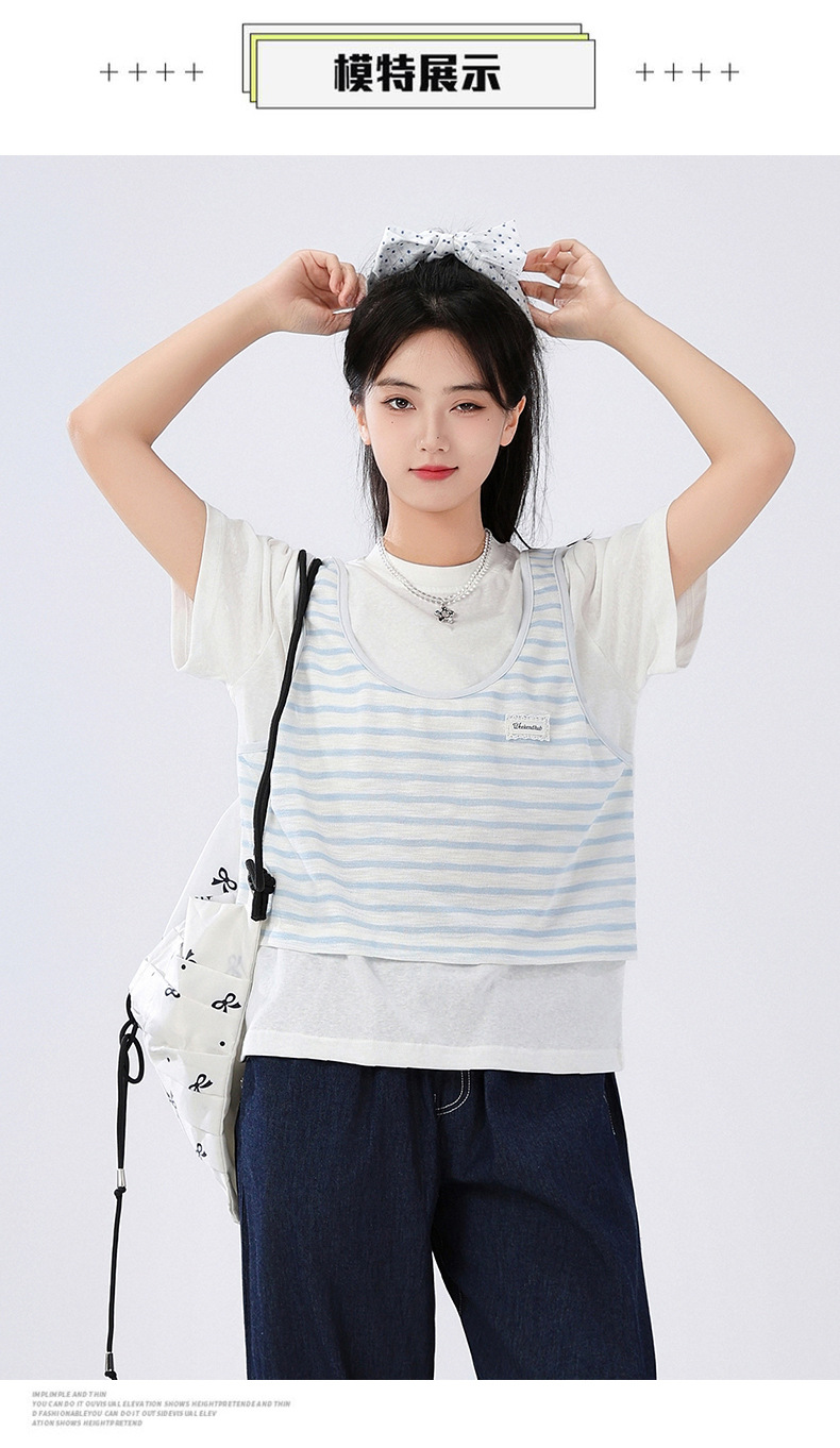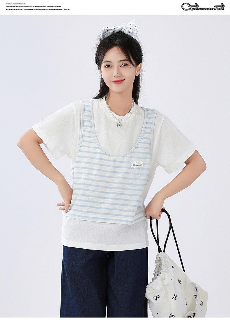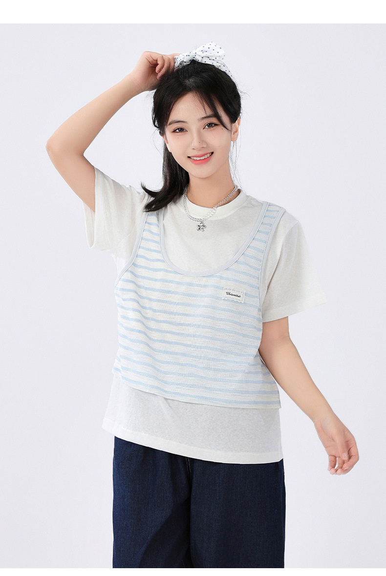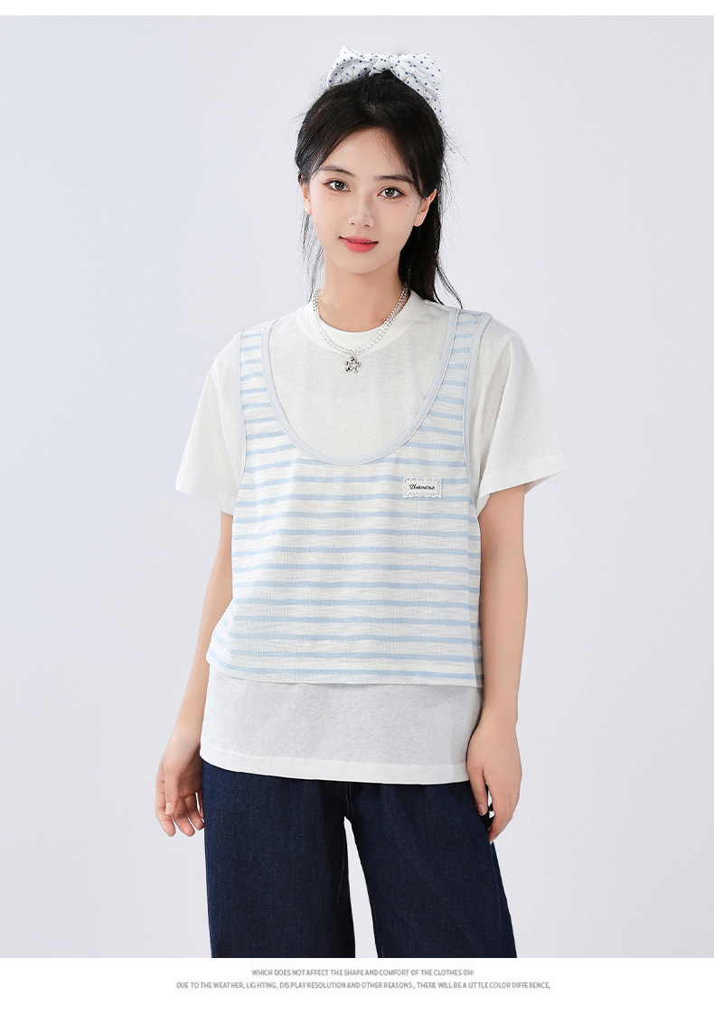 중학교 여중생 가짜 투피스 반팔 티셔츠 여름 새 스타일 큰 어린이 플러스 사이즈 느슨한 청소년과 학생 화이트스토어 가기