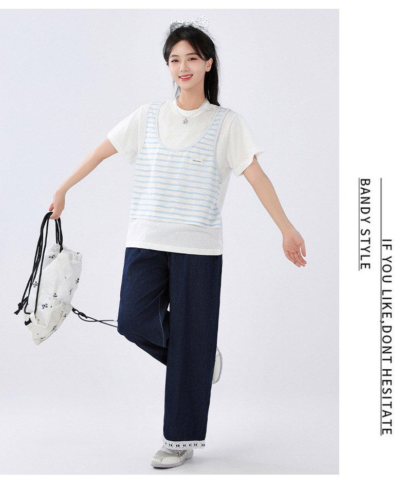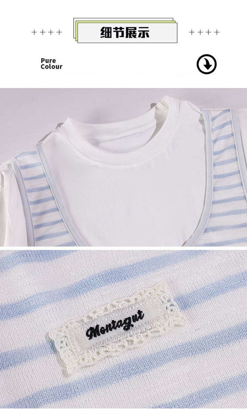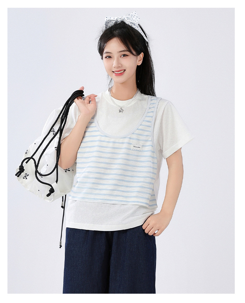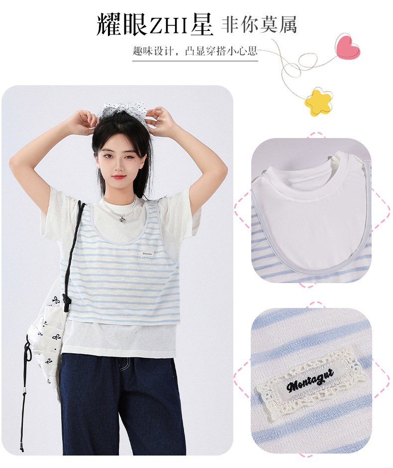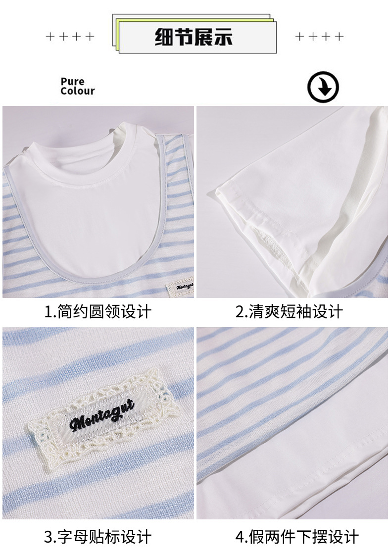 중학교 여중생 가짜 투피스 반팔 티셔츠 여름 새 스타일 큰 어린이 플러스 사이즈 느슨한 청소년과 학생 화이트스토어 가기