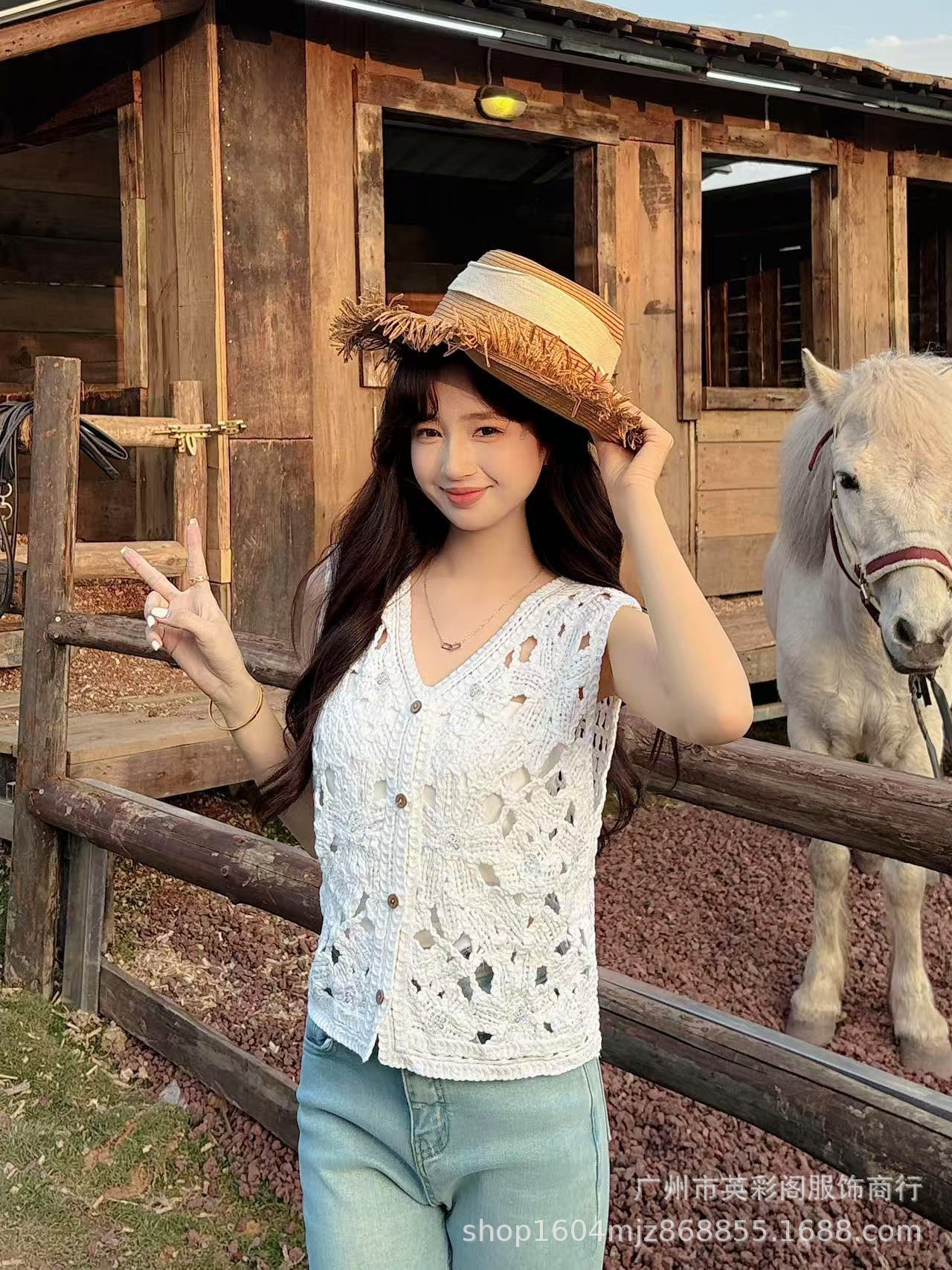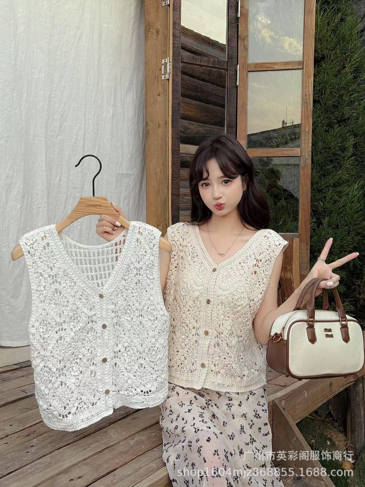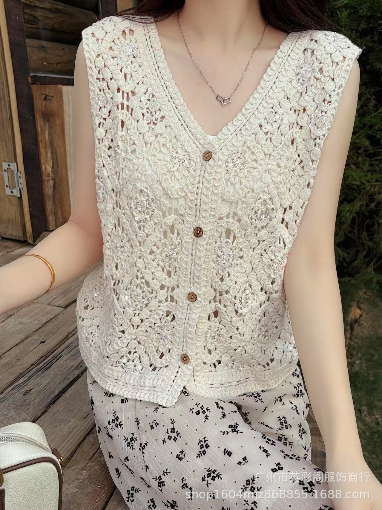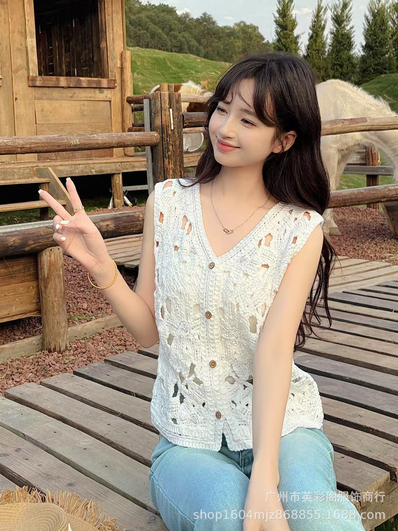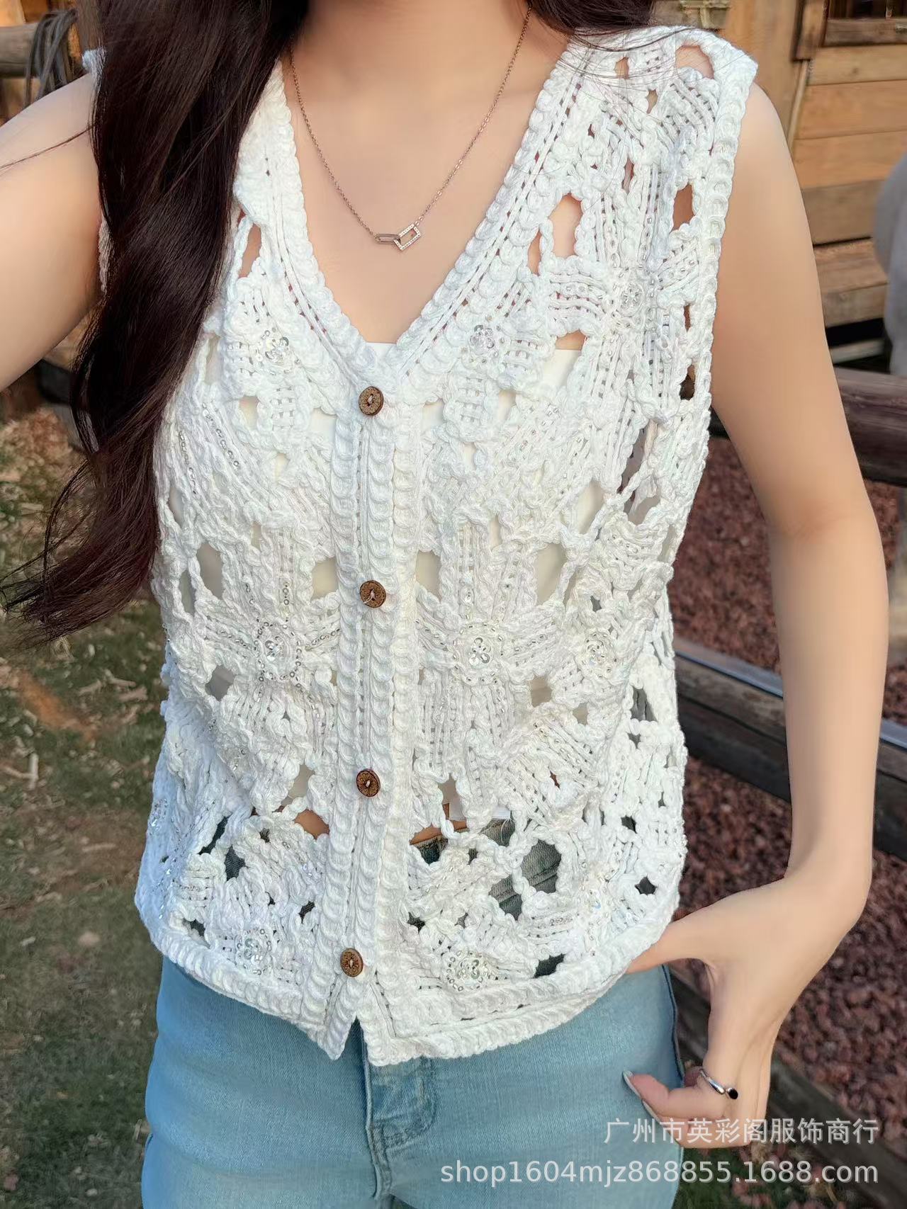 봄 휴가 스타일 v 넥 조끼 레이어드 하이 엔드 탑 여성용 보헤미안 중공 후크 패턴 조끼스토어 가기