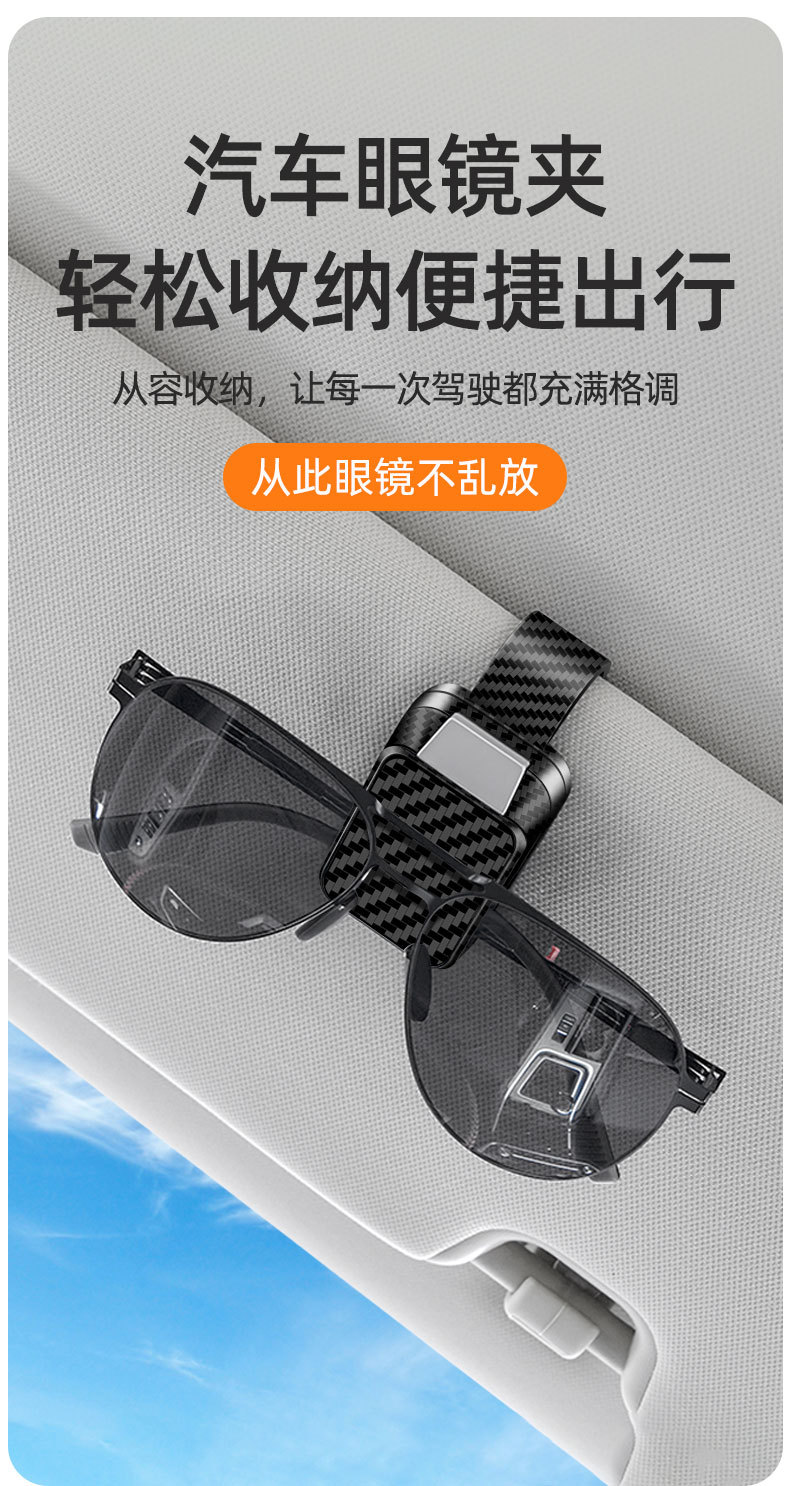 자동차 탄소 섬유 패턴 안경 클립 선 바이저 고급 수납 인테리어 용품 휴대용 선글라스 클립 걸이 수납