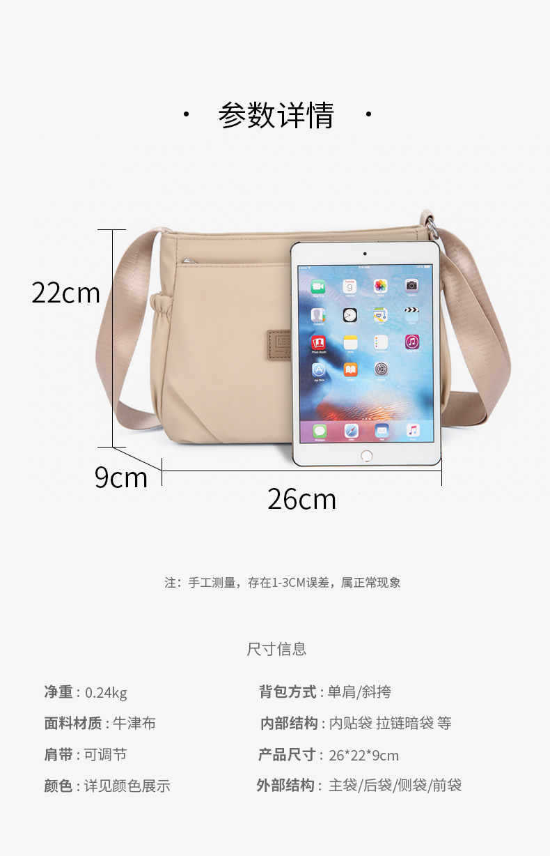 시즌 신상품 경량 발수 나일론 가방 트렌디 쇼핑 여성용 크로스백 다용도 통근 가방 숄더백