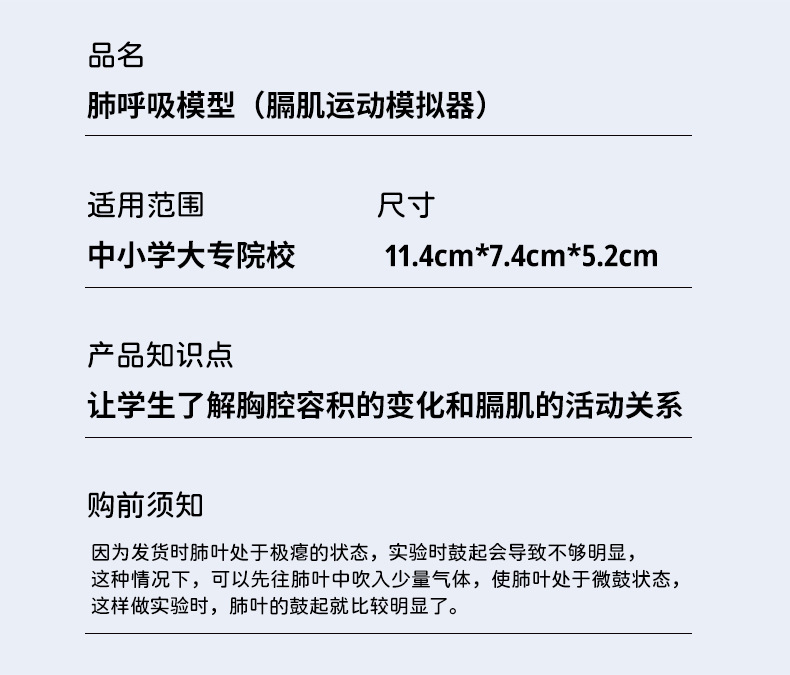 폐 호흡 시뮬레이터 다이어프램 운동 모델 인간 폐 가스 교환 중학교 물리학 실험 장비 교육 보조스토어 가기