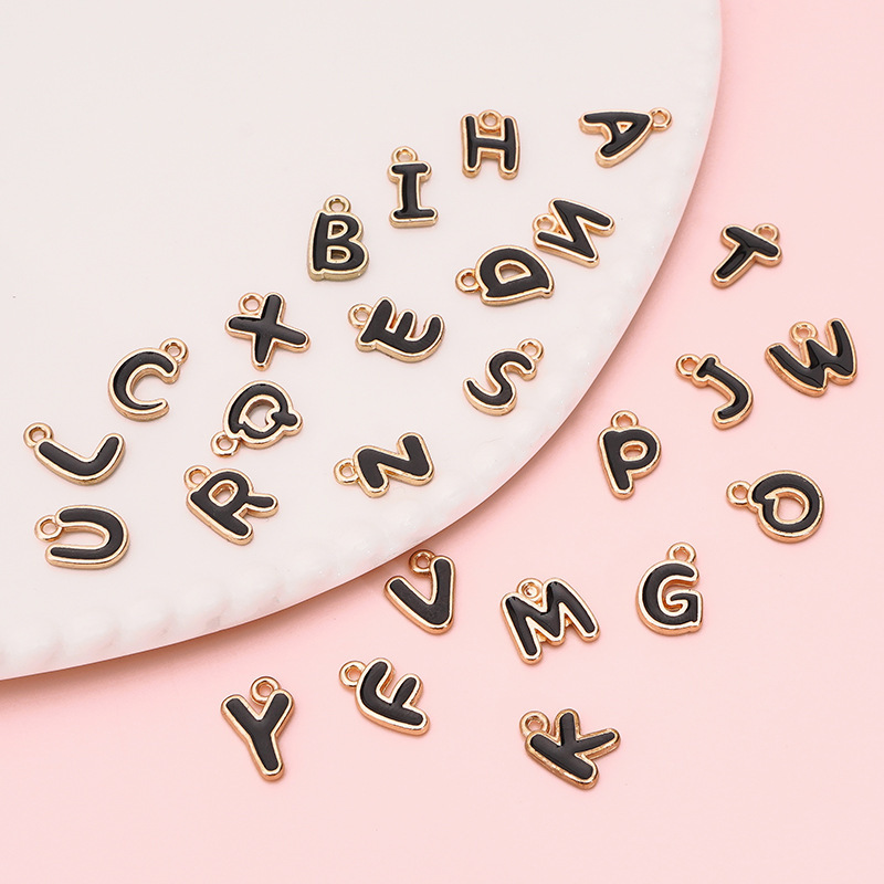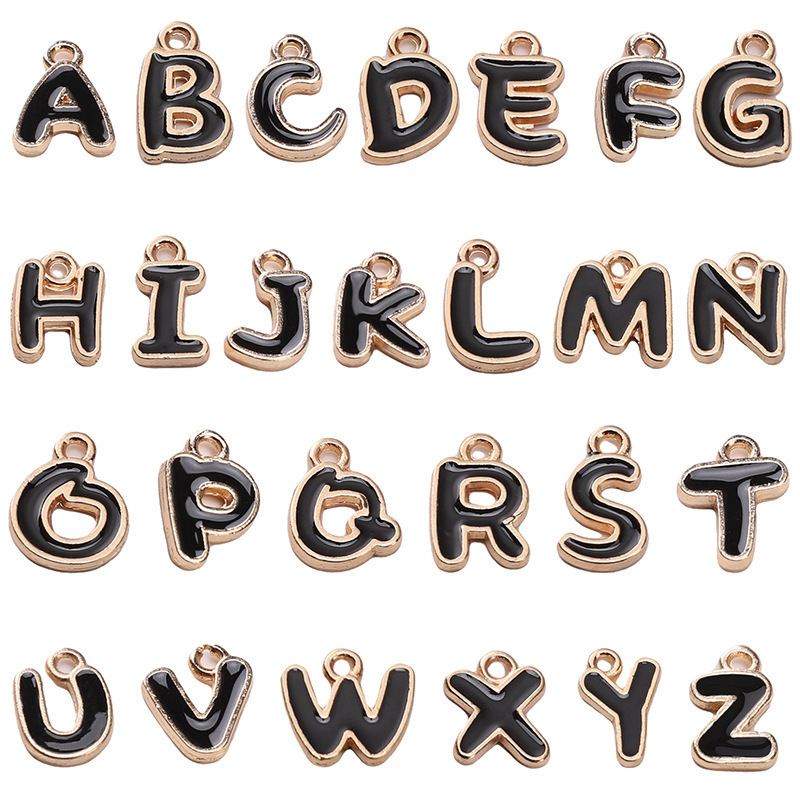 26개의 불규칙한 검은색 영문자 펜던트 합금 드롭 오일 핸드메이드 DIY 수제 팔찌 목걸이 쥬얼리 액세서리스토어 가기