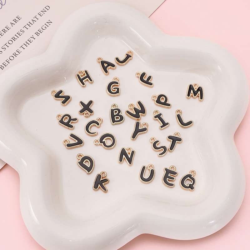 26개의 불규칙한 검은색 영문자 펜던트 합금 드롭 오일 핸드메이드 DIY 수제 팔찌 목걸이 쥬얼리 액세서리
