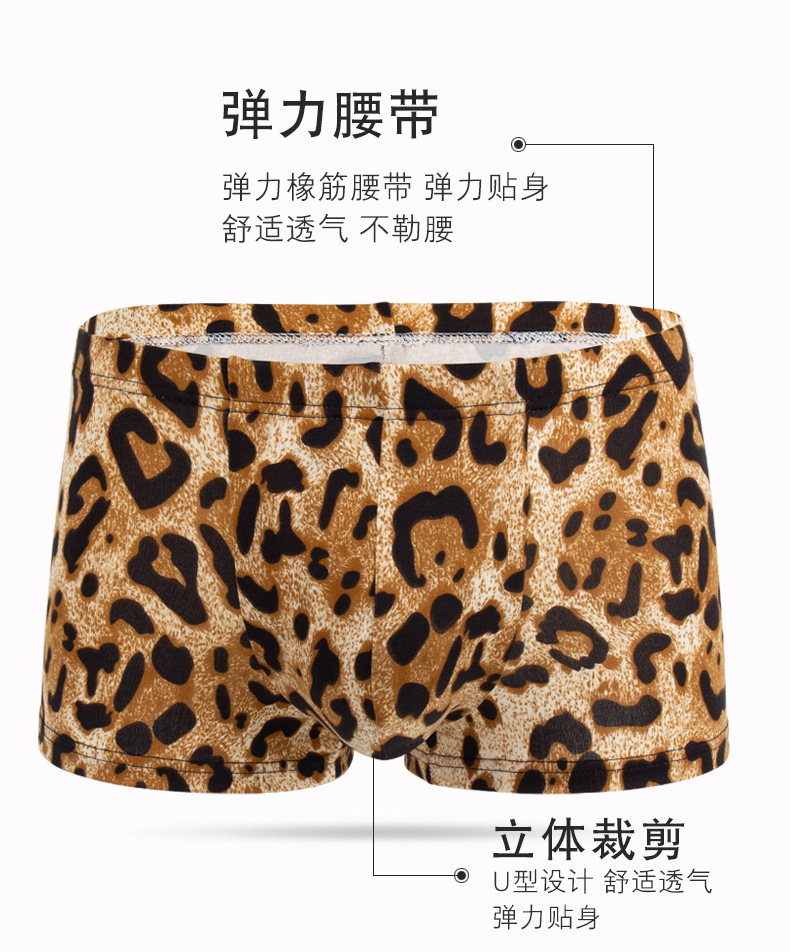 남성용 드롭 배송을 위한 국경 간 전용 제품, 남성용 섹시한 프린트 레오파드 프린트 복서 팬티, 남아용 트렌디 반바지스토어 가기