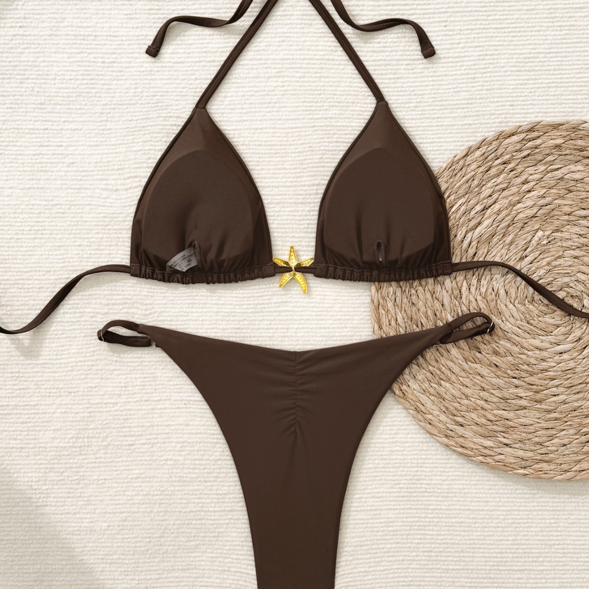 2025 새로운 유럽과 미국의 단색 섹시한 비키니 수영복 크로스보더 아마존 레이스 업 비치 스플릿 비키니
