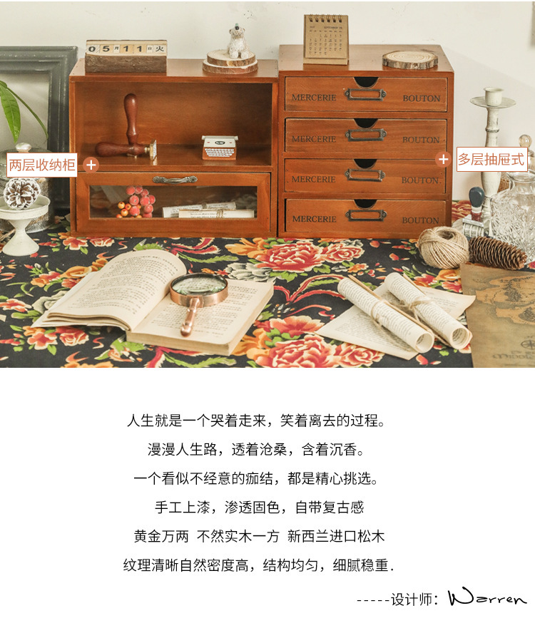 사무실 책상 보관 캐비닛 서랍 형 대형 목재 가정용 침실 데스크탑 다층 테이프 손 계정 보관 상자 일본식스토어 가기