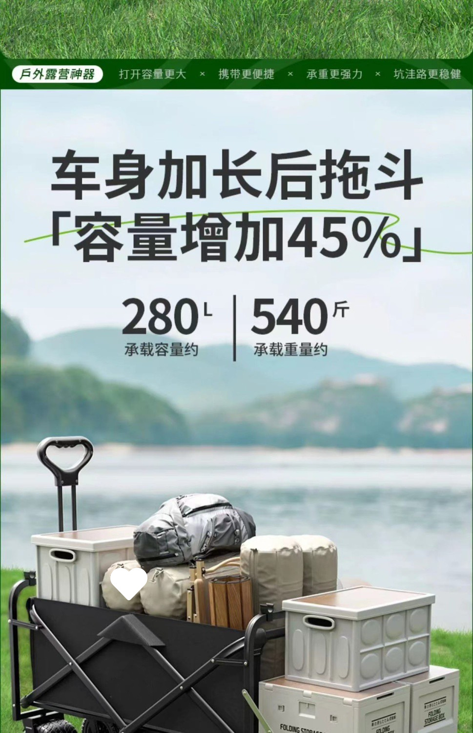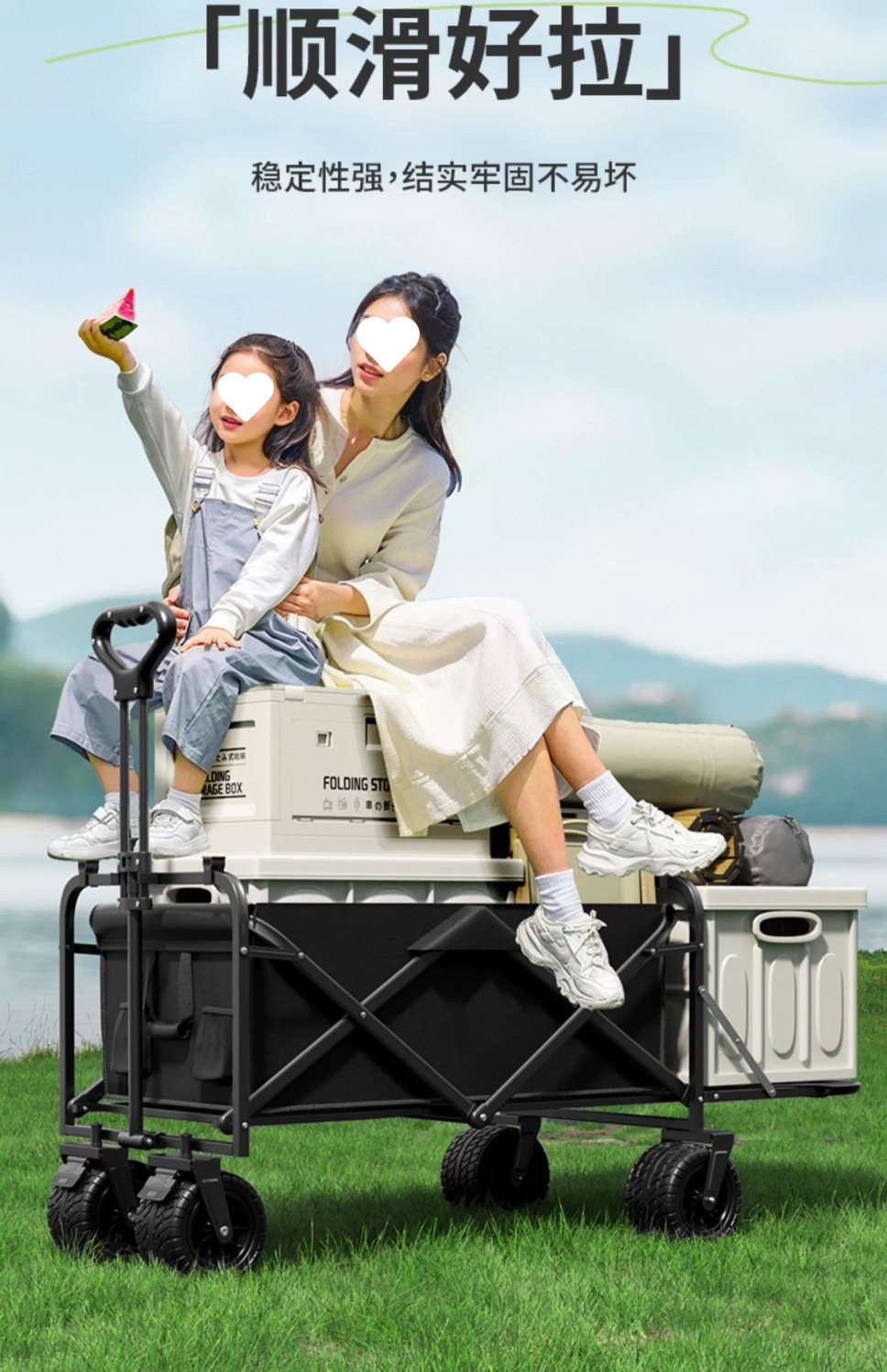 Tuy 리프팅 가능한 트레일러 캠핑 트롤리 어린이용 캠핑 트롤리 야외 접이식 피크닉 트레일러