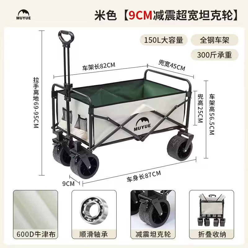 • 카키 - 슈퍼 타이어/드래그 버킷 모델 10inch 탱크 휠 + 높이 조절 접이식 테이블