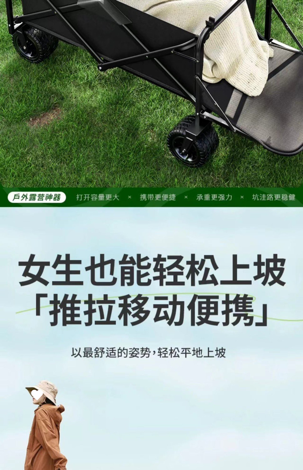• 카키-대형/ 8inch 베어링 오프로드 휠/듀얼 브레이크 + 접이식 테이블