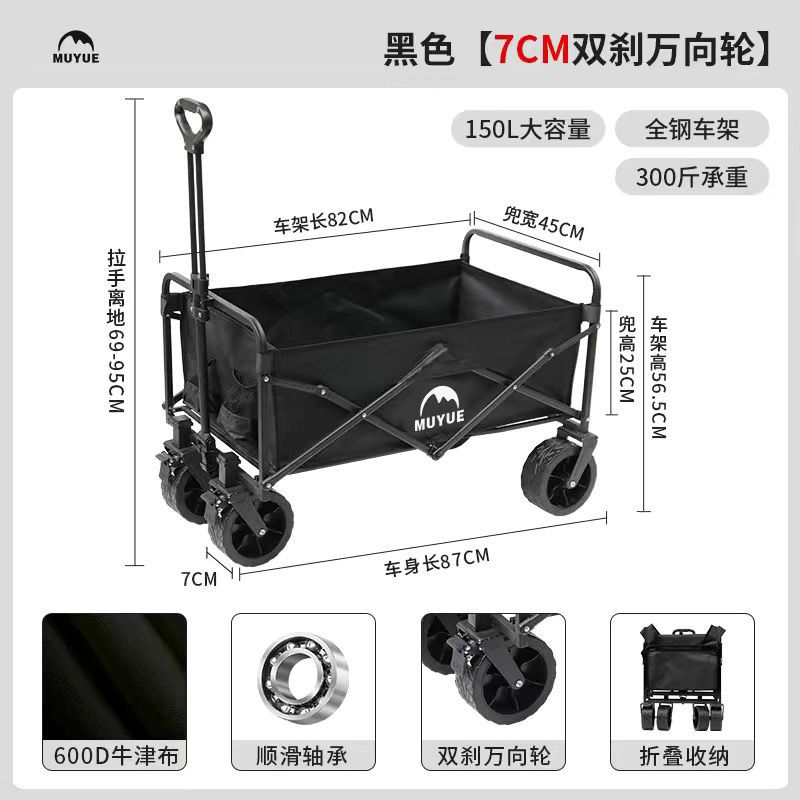 Tuy 리프팅 가능한 트레일러 캠핑 트롤리 어린이용 캠핑 트롤리 야외 접이식 피크닉 트레일러스토어 가기