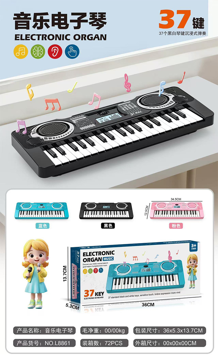 국경 간 인터넷 레드 37 키 어린이 전자 오르간 초급 멀티 기능 재생 가능한 작은 피아노 소녀 장난감 피아노스토어 가기