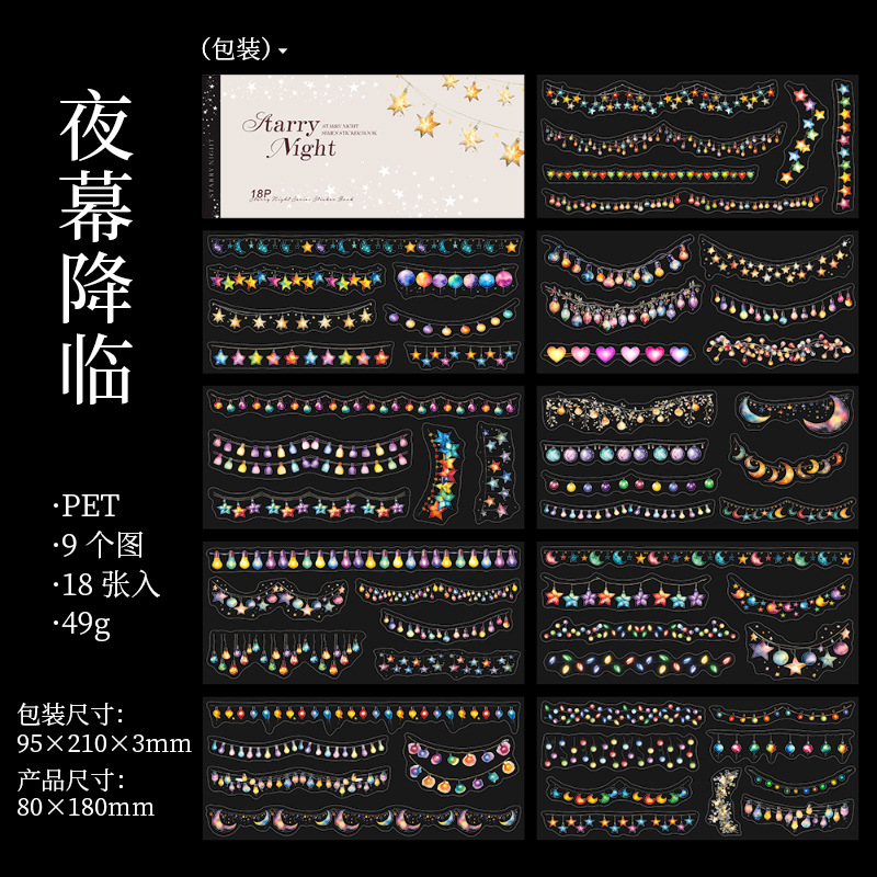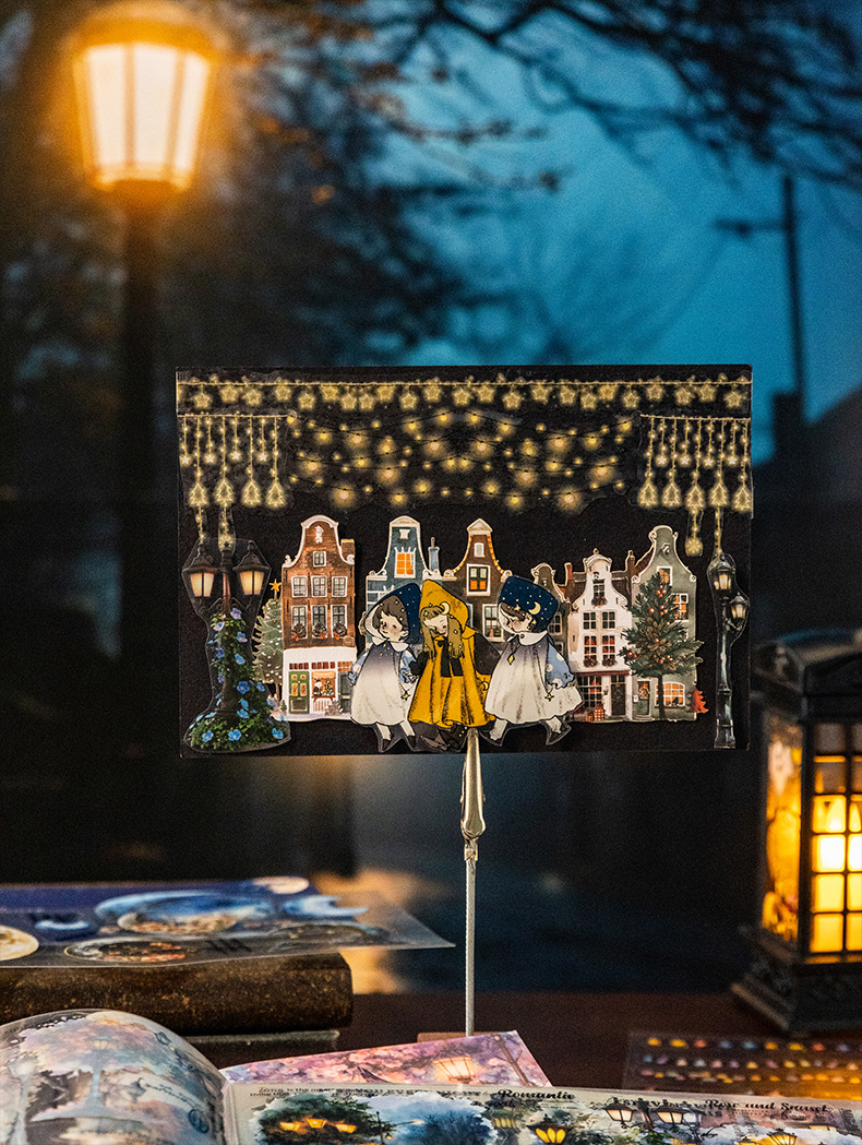 별빛 밤 다이 컷 대형 스티커 책 복고풍 문학 조명 달 가로등 핸드북 장식 diy 재료스토어 가기