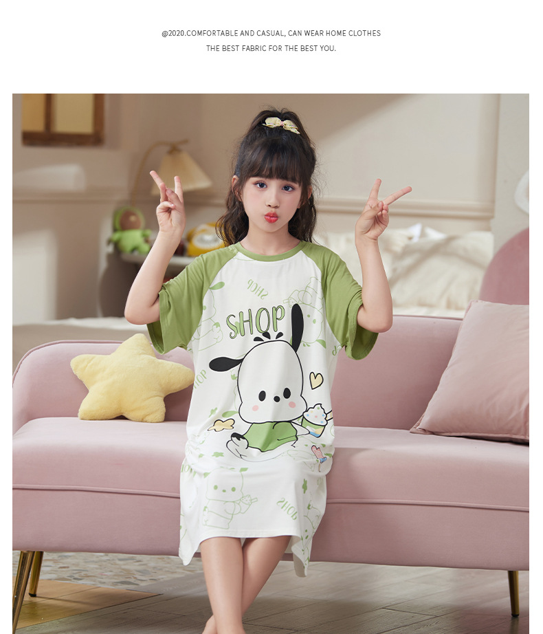 여아 잠옷 모달 얇은 여름 어린이 잠옷 어린 소녀 아기 중소형 어린이 여름 가정복스토어 가기